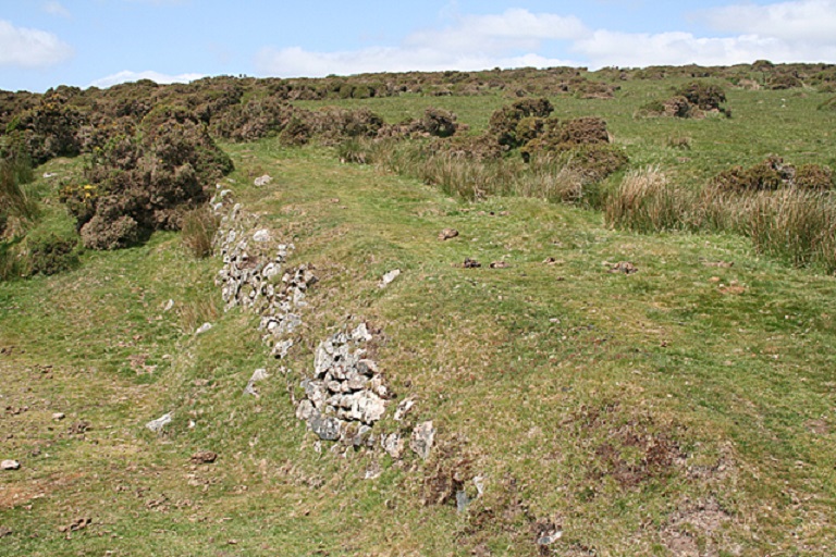 Redlake China Clay pits were active between 1910 and 1932, operated by the China Clay Corporation Ltd and later by the Ivybridge Clay Company. The extractive site and the processing works are at several different locations, all served by the Redlake Railway which runs from Cantrell at Bittaford, to the Redlake pits, a distance of 12.7 kilometres. The primary processing plant (MDV5159) was on Ugborough Moor, while the drying sheds and distribution facility was at Bittaford. Clay was transported between the two via a twin ceramic pipeline (MDV5167) running approximately parallel with the railway. The clay pit is located on flattish ground at the head of Red Lake, an eastern tributary of the River Erme, from which the name of the clay works was derived, and which had previously been heavily worked for tin using stream-working methods. The clay-working remains comprise a very deep pit, though this is now completely water filled with a surface area of 1.4 hectares. A large overburden heap (MDV122909) in the form of finger dumps is 120 metres south-west of the pit, where the waste was delivered via a tramway. The earthwork cutting through which the tramway passed survives though now disguised by rushes. The main, cone-shaped waste heap (MDV 26060) is adjacent to the north-east side of the pit. This was a sky tip of 20 metres high, which in later years of operation was fed by an inclined tramway leading directly from the bottom of the pit to the summit of the cone. The ridge on which the incline travelled survives running up the south-west arc of the heap. Evidence of flat-topped finger dumps on the south-east slope of the mound suggest that an earlier phase of dumping used horizontal trams to distribute the waste. Two shallow reservoirs (MDV 25059) are sited to the south-east of the sky tip covering an area totalling 0.5 hectares. These probably supplied water to the monitors to wash the clay out of the pit, as well as the boilers in the engine house. Both still retain water. The remains of several buildings survive as either stone foundations or demolished rubble. A number of timber-framed buildings … including a peat store, locomotive shed and others, have left no trace other than the levelled ground on which they once stood. The engine/boiler house (see MDV 24806) was the most substantial building at the clay works, constructed from stone, brick and re-enforced concrete. Remains of the winding house (see MDV122901) sit on the pit edge and occupied an area of approximately 9.7 metres by 7.6 metres. Of the range of buildings to the south, … fragments of only the two masonry structures survive (MDV122902), built from stone and brick and totally demolished, leaving a few short lengths of in-situ wall bases and a section of a chimney breast to the south. The northern of these was probably the Blacksmith’s shop which has the concrete base of an anvil with fixing studs in situ. The southernmost building at Redlake was the barracks (MDV25061). This was a rectangular, timber and corrugated iron structure built onto shuttered concrete foundation walls. Only the foundations survive, which have overall dimensions of 19.3 by 12.5 metres, standing to a maximum of 0.4 metres high. [38]