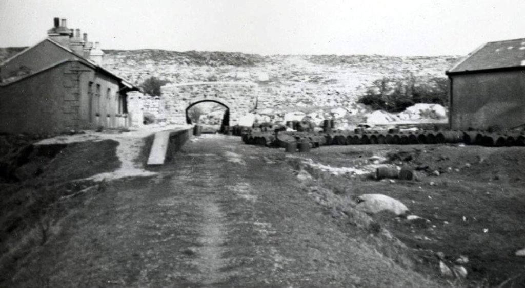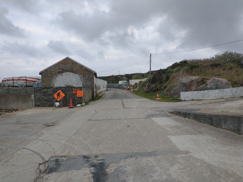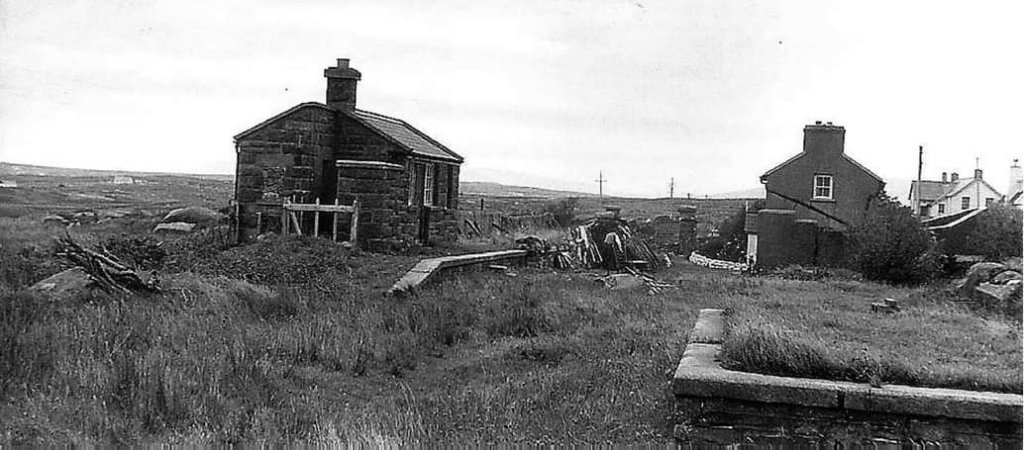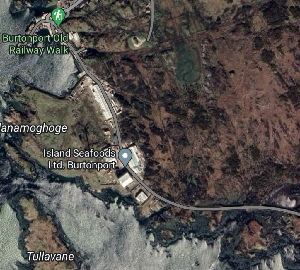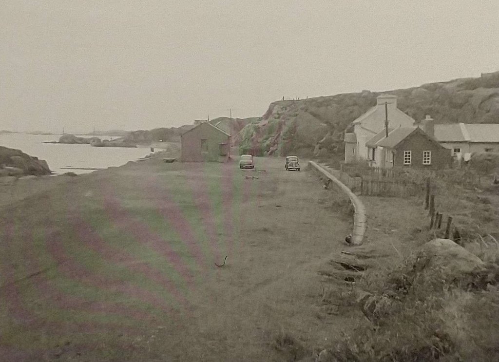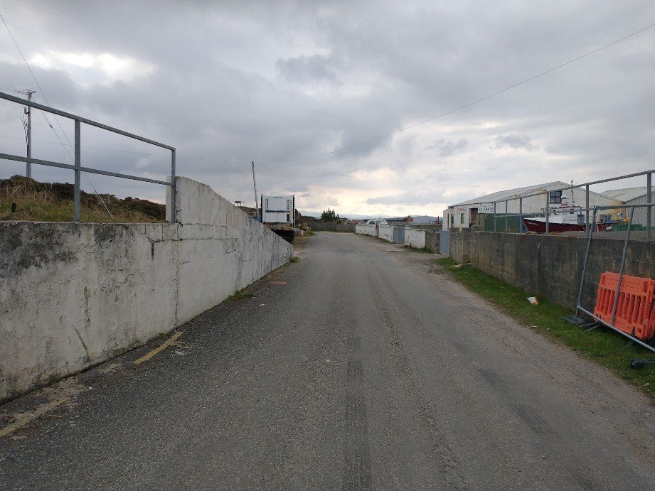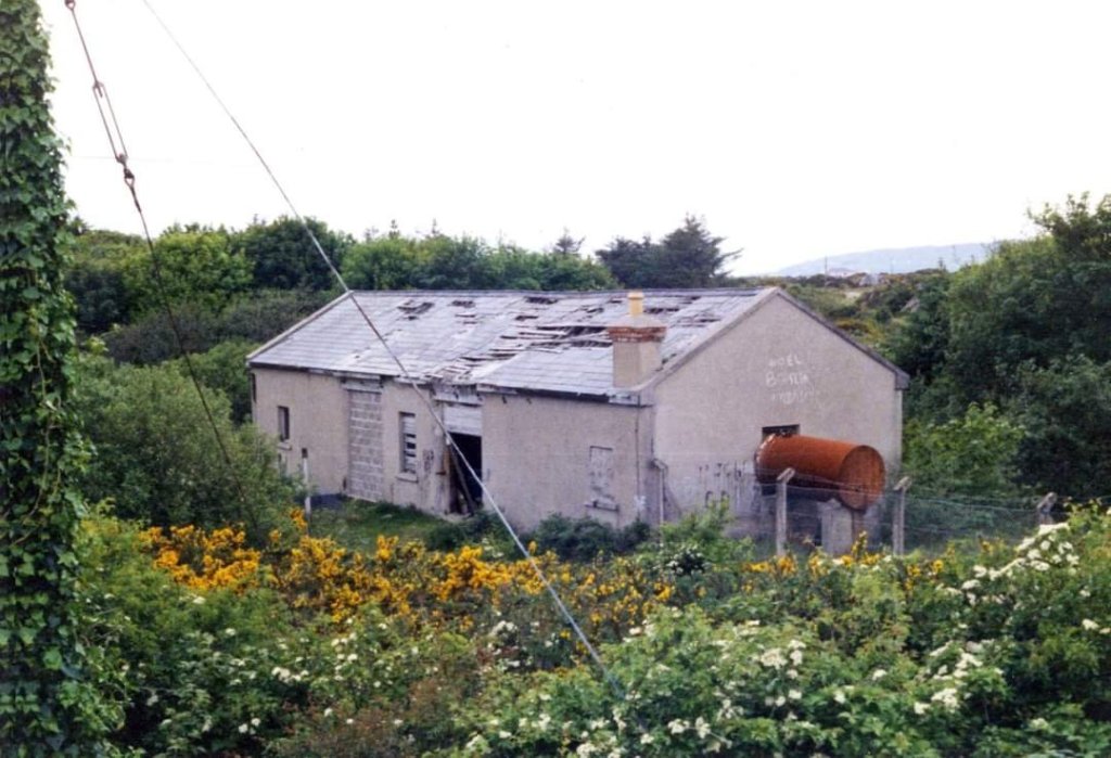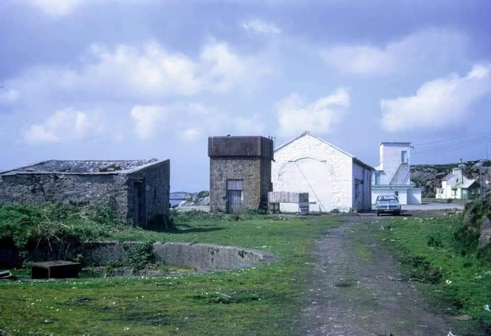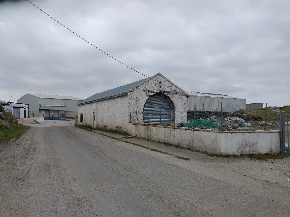 Bell and Flanders describe arriving at the station from the South in the 1980s by car, the old trackbed now being a narrow road: “You drive through a small cutting before entering the railway’s terminus at Burtonport. … Just before the station itself you drive through a fish processing plant then, suddenly, on the left, you can see the engine shed, recognisable by its characteristic round-top windows and door.” [2: p83]