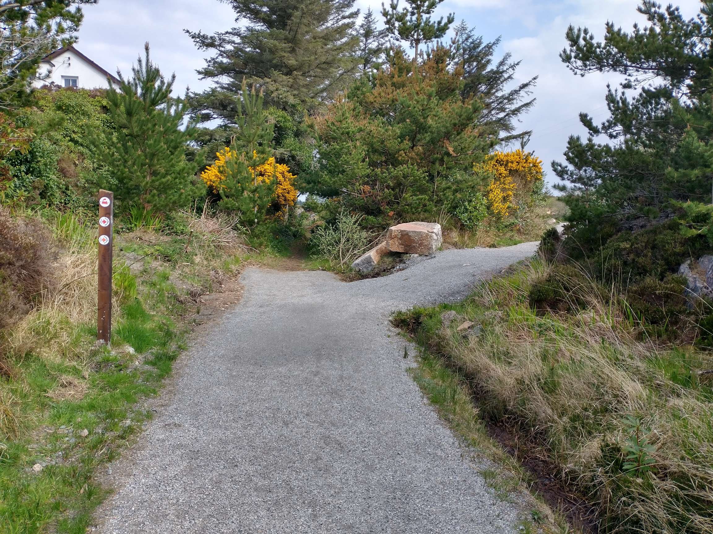 In April 2023 we stayed close to Burtonport, adjacent to Loch Meela, in Co. Donegal. On the first full day of our stay, we walked the Burtonport Old Railway Walk. [1] A 6km length of the Burtonport extension of the Londonderry & Lough Swilly Railway has been made into an accessible path. The weather was great and the walk very enjoyable. We were impressed by the investment in the walk made by the local community and Donegal County Council.