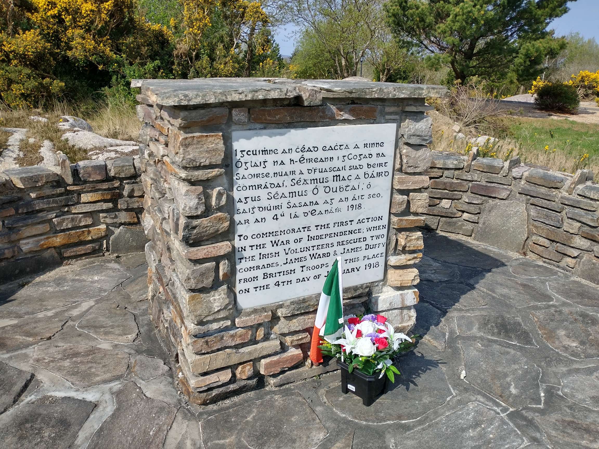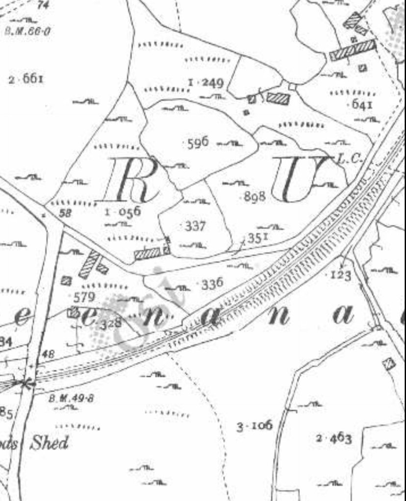 Kincasslagh Railway Station looking Southwest along the line towards Burtonport The Goods Shed is to the left and the passenger facilities are towards the end of the platform on the right. The station was built in 1913 and closed with this length of the line in 1940. This image was shared on the Burtonport Heritage Facebook Group by Patrick Boner on 15th February 2013. [12]The remains of the Goods Shed in the 21st century, seen from the public road to the South. [My photograph, 23rd April 2023]A 1959 view through the site of Kincasslagh Railway Station from Southwest of the Goods Shed seen in the right foreground. The Crossing Keeper’s Cottage is partially masked by the Goods Shed and the passenger facilities are on the left. This photo was taken in May 1959 by Michael Davis and was shared by Patrick Boner on the Burtonport Heritage Facebook Group on 1st September 2018. [13]A view looking Northeast through the site of the station from the location of the goods shed. The passenger building is on the left and crossing keeper’s cottage on the right. The photograph was taken in 1965 by Michael Davis and was shared by Patrick Boner on the Burtonport Heritage Facebook Group on 3rd September 2018. [14]This satellite image is at a slightly larger scale than similar images above it shows the location of what was Kincasslagh Railway Station. [Google Maps, 28th April 2023]The passenger station building and platform as they appear in the 21st century. The site is very well maintained. [My photograph, 23rd April 2023]Crossing Keeper’s Cottage No.21. [My photograph, 23rd April 2023]The view from what used to be the Level Crossing, looking Southwest into the site of the station. [My photograph, 23rd April 2023]Turning through 180°, this is the view Northeast from the old level crossing location. The modern road is ahead beyond the gorse bushes.The view Southwest from the modern road. The Crossing Keeper’s Cottage is just visible above the gorse. The garage is on the line of the old railway. [My photograph, 23rd April 2023]This is a memorial adjacent to the line of the old railway to the first action in the War of Independence. [My photograph, 23rd April 2023]