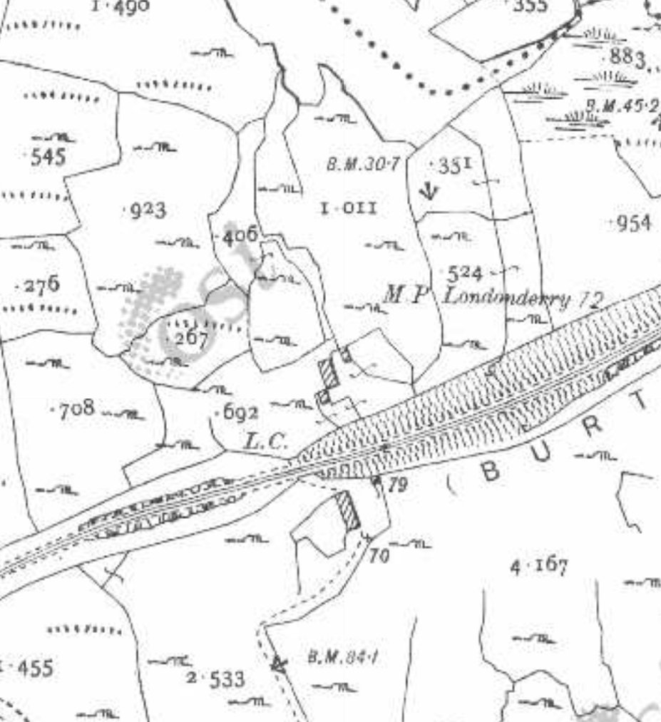 The whole of the Burtonport Extension features in a guide written in the late 1980s by Dave Bell & Steve Flanders. [2] In that guide, they provide a series of relatively low resolution monochrome photographs of the railway in operation and as they found it in the 1980s. This article is the first in a series looking again at the line and what can be found along its route.