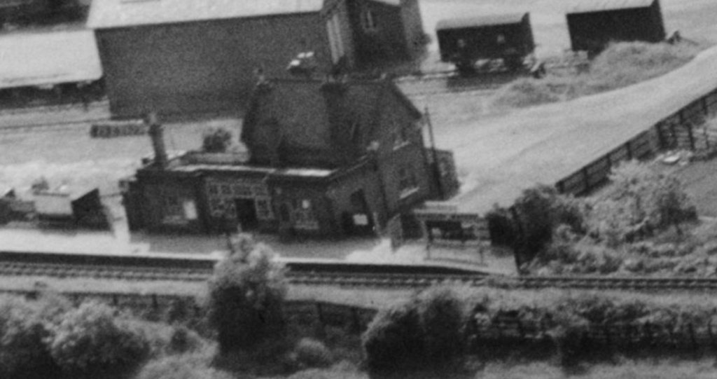Immediately to the South of Madeley Market Station was the station goods yard. Trains from Hadley Junction accessed the yard by means of a trailing connection, as can be seen on the Ordnance Survey map extract below.