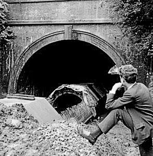 The tunnel during the construction of the surface water storm drain which passes through it. This image was shared on the Telford Memories Facebook Group by Marcus Keane on 7th January 2022. [16]