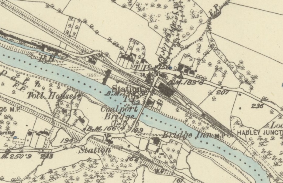 The view Southeast from under the Hay Incline. The Coalport Branch continued curving lazily to the Southeast. [My photograph, 29th March 2023]A general view from the canal at the base of the incline which shows the bridge carrying Coalport High Street across the bottom of the incline. The Silkin Way passes beneath the incline about 60 metres beyond Coalport High Street. [My photograph, 17th February 2023]Looking Southeast along the canal. What is now the Coalport China Museum is on the right between the canal and the River Severn. The buildings on the left are now a Youth Hostel. The buildings on both sides of the canal are Coalport’s two historic China Works. [My photograph, 17th February 2023]A closer view of the China Works between the canal and the river. [My photograph, 17th February 2023]Now travelling Southeast behind properties in Coalport Village. The China Works Museum and the last length of the Shropshire Canal are away to the right off the photograph. [My photograph, 29th March 2023]The route of the old railway runs at the back of properties on Coalport High Street and Riverside Avenue. [My photograph, 29th March 2023]In this next extract from the 6″ 1881/1882 Ordnance Survey which was published in 1883 we see the approach to Coalport East Station on the North side of the River Severn. The bridge carrying Coalport High Street across the station mouth and the bridge carrying Coalport Road across the main station site. [21]In this next extract from the 6″ 1881/1882 Ordnance Survey which was published in 1883 centres on Coalport East Station. The bridge carrying Coalport High Street across the station mouth and the bridge carrying Coalport Road across the main station site. Extending West from the station towards the end of the canal, is a single siding. [21]The same location but on the 25″ Ordnance Survey of the same date. Both of the two Coalport Stations show very clearly on this extract. [22]The last length of the Branch and the station site at Coalport as shown on Google Maps. [Google Maps, 1st April 2023][32]New buildings now occupy the land on the North side of the old railway. [My photograph, 29th March 2023]Approaching the Coalport East Railway Station and before passing under Coalport High Street, the car park for the Brewery Inn sits, today, on the right side of the old line. [My photograph, 29th March 2023]The bridge carrying Coalport High Street over the Silkin Way and the old railway route. The storm drain which runs under the Silkin Way is here occupying significant space under the road-bridge. [My photograph, 29th March 2023]The Silkin Way passes under Coalport High Street alongside the modern storm drain. [My photograph, 7th February 2023]Looking Northwest towards the Coalport High Street bridge across the railway. [My photograph, 7th February 2023]Looking north across the bridge carrying Coalport High Street across the station throat. [Google Maps, October 2022]Looking Southeast from the South side of the bridge past cottages on the approach to the site of what was part of the railway station yard. [My photograph, 7th February 2023]Looking West along the same road towards Coalport High Street. [My photograph, 7th February 2023]Standing close to what was the station throat looking into the station site. [My photograph, 7th February 2023]The bridge over Coalport East station as in appears in 2023. [My photograph, 7th February 2023]Much closer to the bridge. The river is on the right. [My photograph, 7th February 2023]Coalport East station building on 15th April 1963. It was still standing despite the closure of passenger services in 1952. It sat on the West side of the bridge. Beyond the bridge the carriage shed can be seen, (c) Dr Neil Clifton and included here under a Creative Commons Licence. As can be seen, the original bridge is of a different construction from that in place in 21st century. (CC BY-SA 2.0) [23]A similar view of Coalport East Station when the passenger service was still operating. The train was known as the Coalport Dodger. The picture was taken between the two world wars. Apparently, this picture came originally from Gerry Hadley, grandson of engine driver Charles Hadley, of Coalport, who used to drive the train. It was carried by the Shropshire Star on 24th June 2020. [24]Another view of the station building and road bridge. The service from Wellington has just arrived at the platform. This image was shared by Metsa Vaim EdOrg on the Telford Memories Facebook Group on 12th December 2020. [25]Coalport East Railway Station seen from the passenger approach to the station. This image was shared on the Telford Memories Facebook Group by Marcus Keane on 28th January 2017. [26]The passenger facilities at Coalport East in the 1930s. This image comes from David Clarke’s collection and was kindly shared with me by email in April 2023. [41]The Coalport Dodger leaving Coalport East in 1948 in the hands of LMS 6601. The loco was renumbered 46601 by BR. It was a Webb 1P 2-4-2 5′ 6″ tank. This image was shared by Derek Norry on the Telford Memories Facebook Group on 3rd January 2016, copyright/photographer not known. [27]Standing in approximately the same place as the locomotive in the last image this 0-6-0 tender loco is in charge of a four coach excursion train at Coalport East Railway Station. The locomotive is numbered 2516 and is an ex-GWR Dean Goods, not to be confused with a Churchward 43xx 2-6-0 which for a time carried this number. 2516 was built in March 1897 and withdrawn in May 1956 The train is the SLS Shropshire Special and the photo was taken on 23rd April 1955. The picture was shared by Lin Keska on the Telford Memories Facebook Group on 5th February 2017. [28][37]2516 is shown here in colour still at the same location (note the efflorescence on the brickwork of the retaining wall. This time the loco is probably ready to depart as all the individuals around it in the image above are now back on the coaches. This image comes f