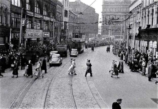 The featured image above shows one of the last tram journeys in Belfast. This tram is travelling along Castle Place on 27th February 1954, heading for Ardoyne Depot. [7]