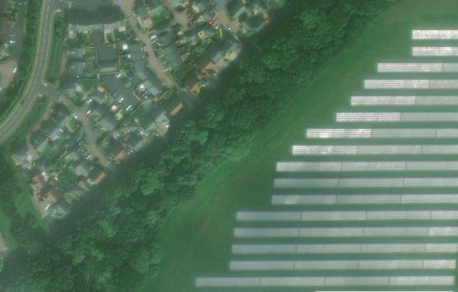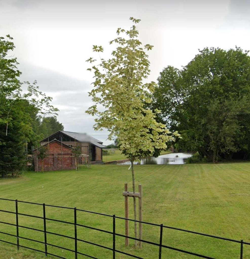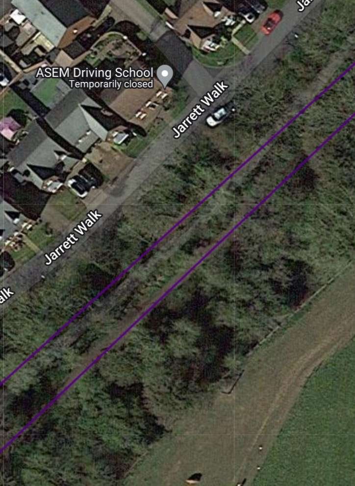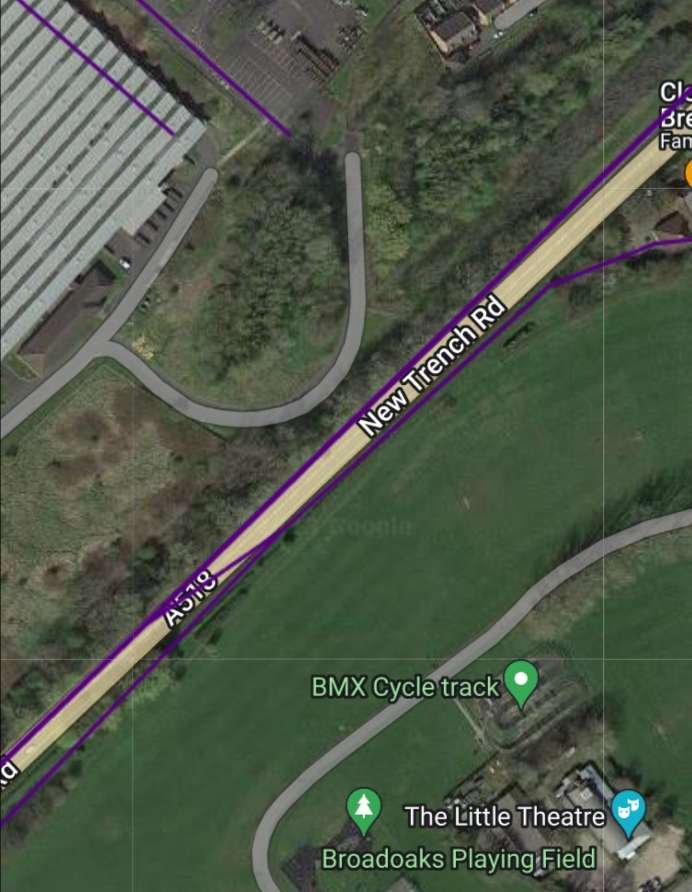 Tree growth patterns highlight both the line of the Humber Arm and the Shropshire Union Canal Newport Branch. [Google Maps, July 2023]