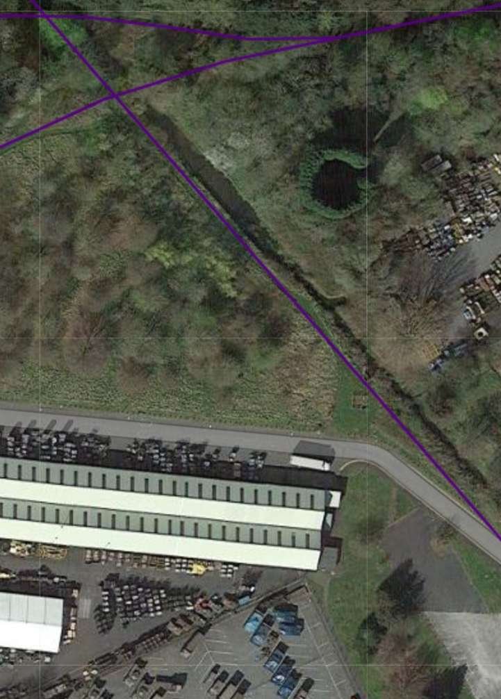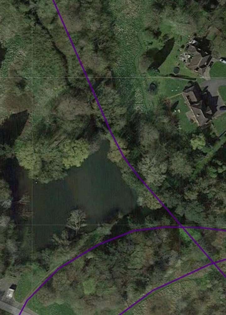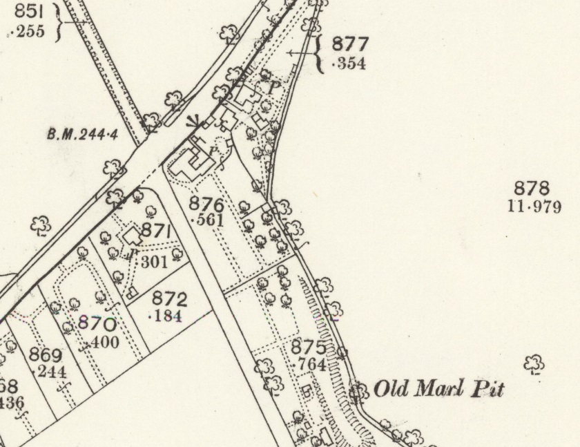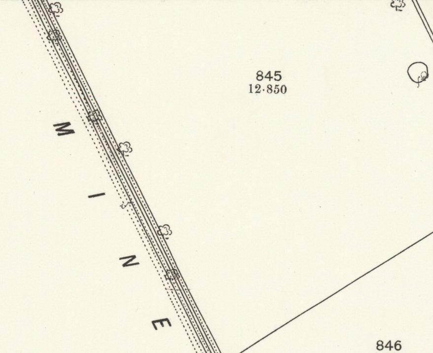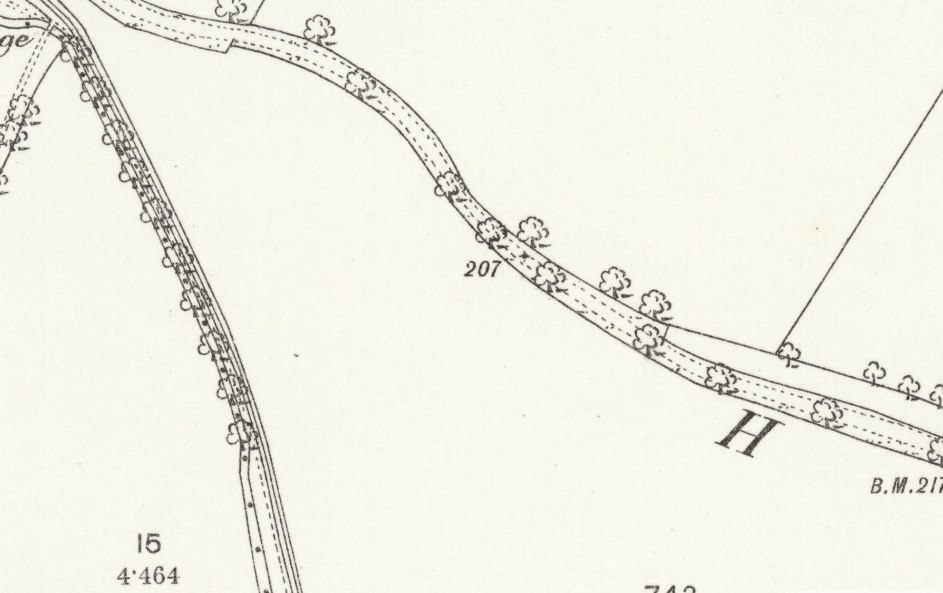 The junction of the Shropshire Union Canal Newport Branch and the Humber Arm which was just a few tens of metres to the South of the aqueduct shown above. The junction was to the East of Kynnersley. The Humber Arm heads Southeast from the Newport Branch. very little changed at this location from the opening to the closing of the Humber Arm. This map comes from the 1901 25″ Ordnance Survey. The following three images are extracts from the next sheet from the Ordnance Survey of 1881.[4]Three successive map extracts cover the length of the Humber Branch (Humber Arm of the Shropshire Union Canal) which appears to the bottom left of the relevant 1881 Ordnance Survey sheet. [5]The remainder of the Canal Arm is on the next 25″ Ordnance Survey sheet to the South which was published in 1882. This length brings the canal to the North end of Lubstree Wharf. [6]The Canal Wharf at Lubstree. 25″ Ordnance Survey of 1882. [6]Approximately the same area as shown on the last map extract above as it appears on the RailMapOnline.com satellite imagery. The purple lines are the approximate line of the Mineral Railway that replaced the tramway we will following first. Satellite imagery shows nothing of the Canal Arm to the North of this image. Heading to the North from here, the line if the canal traverses open fields and then Aqueduct plantation. The trees in the plantation obscure any direct evidence of the old canal arm from above and, similarly, the location of its junction with the Shropshire Union Canal Newport Branch. [10]
