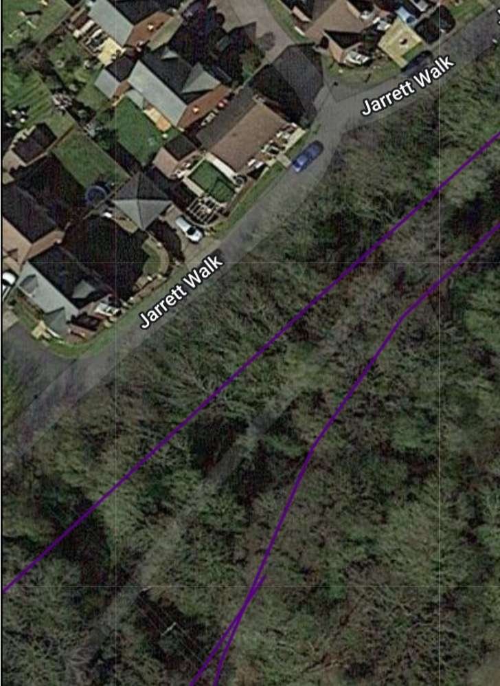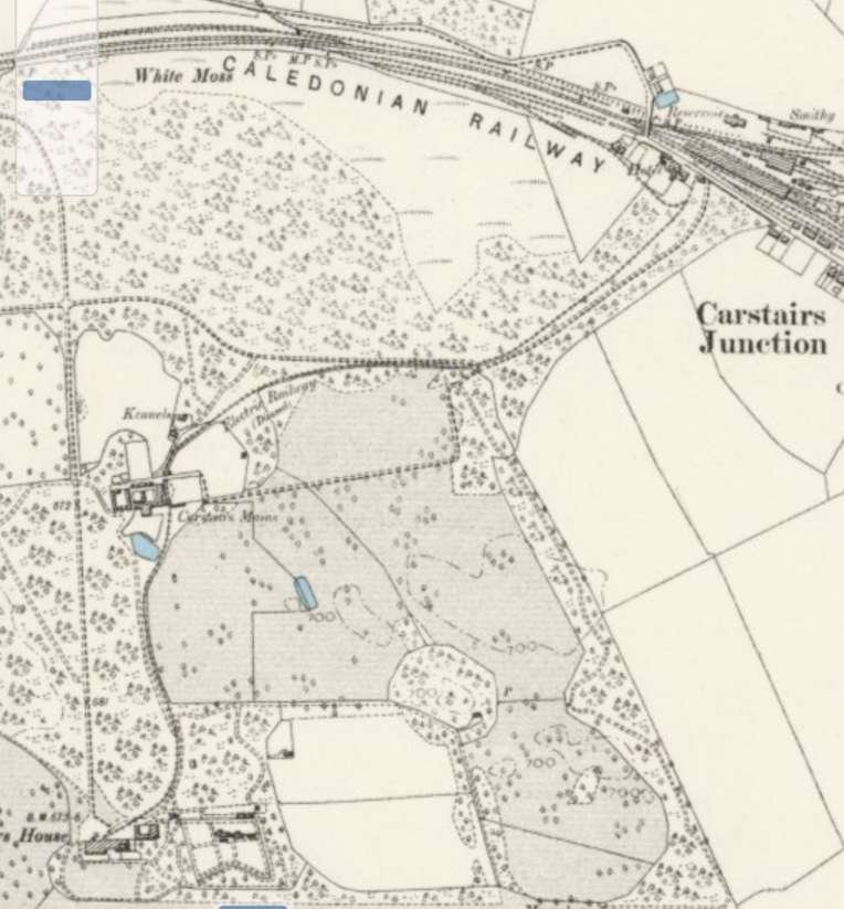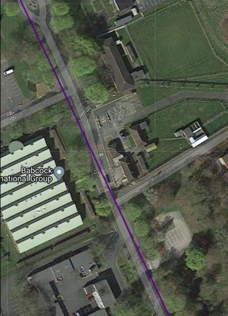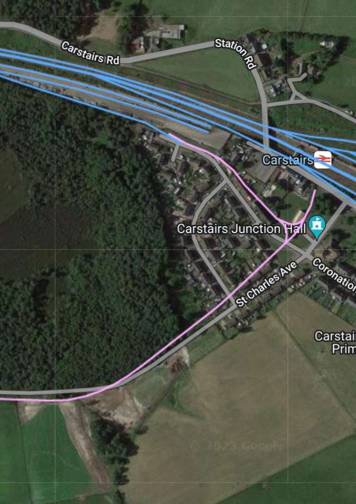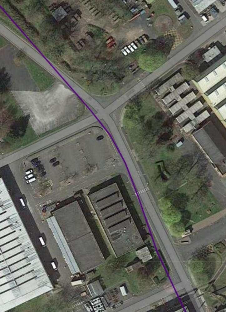 The next two satellite images are taken from the ESRI images provided by the National Library of Scotland. They show the long straight length of the tramway route which is followed by modern roads.