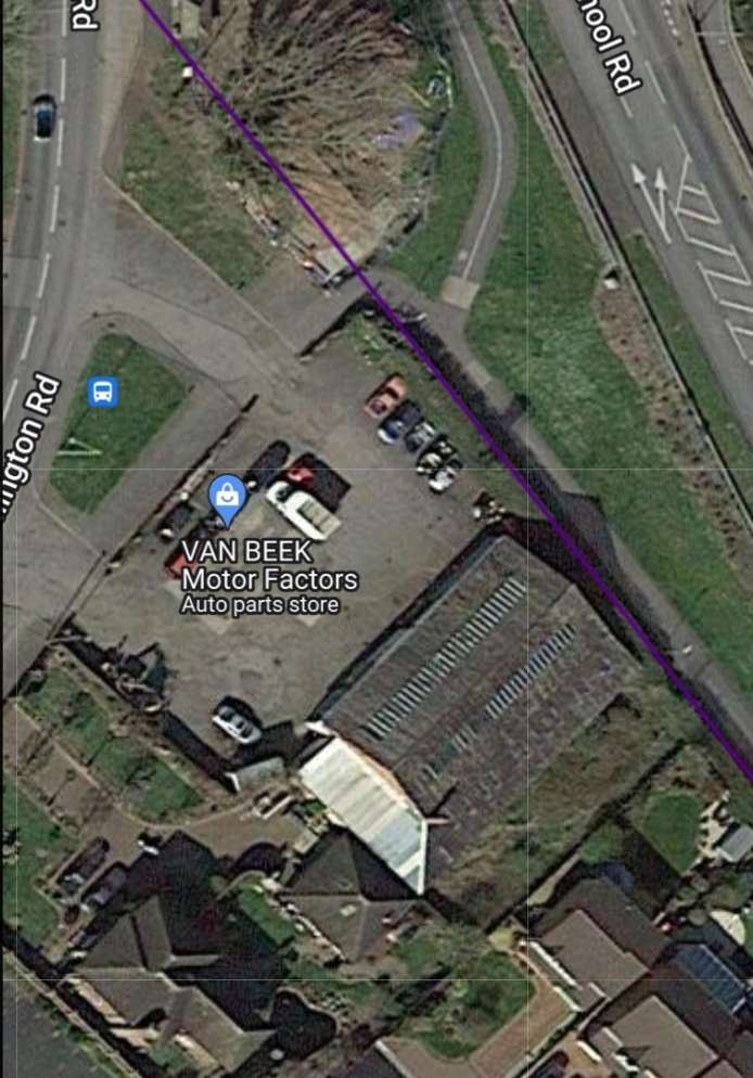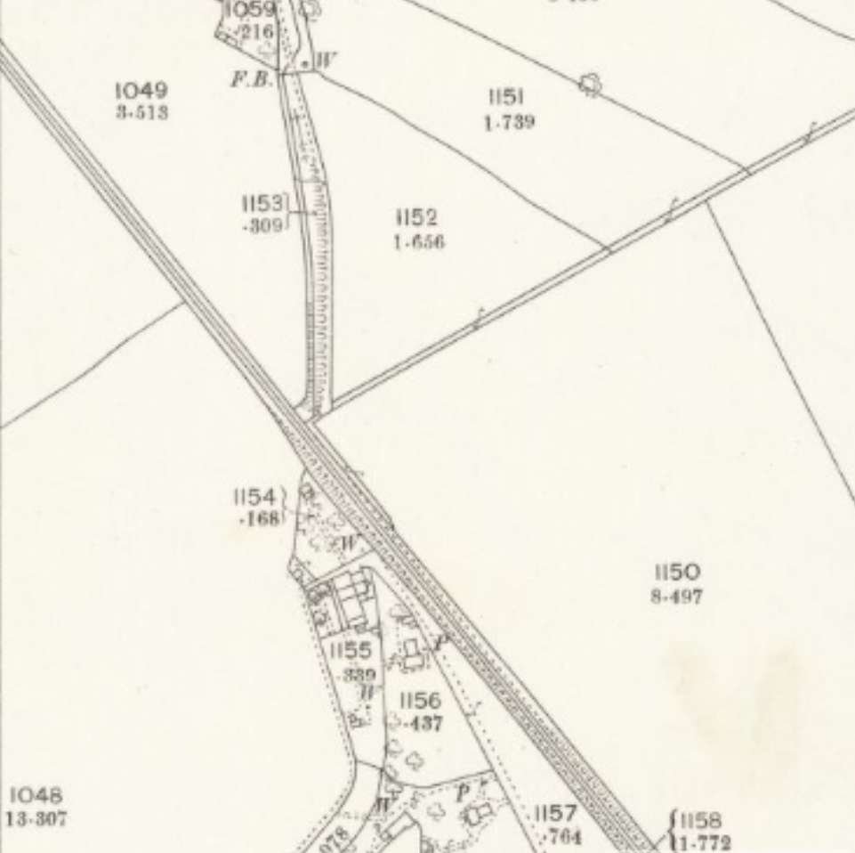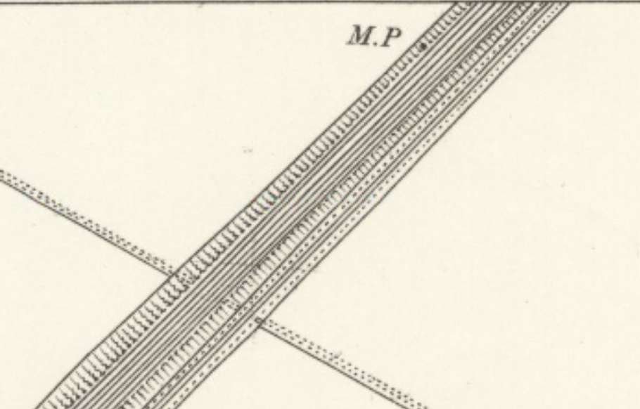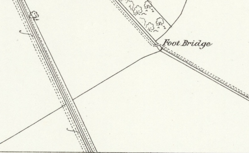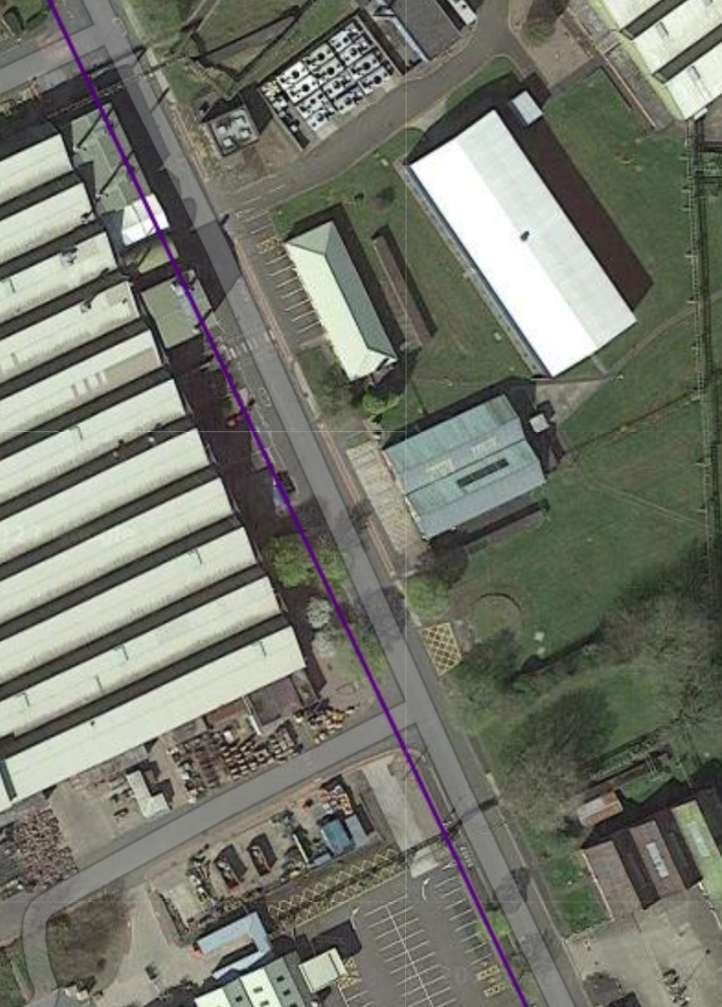 The Humbers hamlet at the end of Lubstree Wharf. The end of the canal can be seen in the top-left of the extract. The tramway/railway crossed the lane through the hamlet at the end of the canal. The Humber Brook runs to the South side of the tramway/railway. [6]These two extracts from RailMapOnline’s satellite imagery cover the same length of the tramway/railway as the map extract above. [10]A wide-angle view looking West-southwest along Humber Lane. The tramway/railway crossed the lane closer to the camera than the bridge which carried Humber Lane across Humber Brook. [Google Streetview, June 2022]The camera is just to the East of the bridge over Humber Brook and is looking Southeast. The brickwork to the right edge of the picture is the end of the parapet of the bridge carrying the lane across the brook. The tramway/railway used to run along the modern driveway, heading Southeast. [Google Streetview, June 2022]This photograph is taken from a point further to the East along Humber Lane. The old tramway/railway ran just beyond the vegetation on the left of the image and behind the properties visible in the right of the picture. [Google Streetview, June 2022]The old tramway/railway continued in a South-southeast direction. [6]Again, this RailMapOnline satellite image shows roughly the same length of line as the map extract above. [10]The old tramway/railway continued following the East bank if the Humber Brook. [6]This satellite image shows the same length of line as the map extract above. [10]This map extract shows the old tramway/railway turning towards the Southeast. The Humber Brook turns away to the West. An open drain crosses under the railway and runs parallel to the old tramway/railway as it heads Southeast. [6]A similar area to that shown on the top-left of the map extract above. The purple line indicating the route of the old tramway/railway is crossed by other purple lines which mark later rails serving MOD Donnington. [10]This RailMapOnline covers approximately the same length of line as the bottom-right quadrant of the last map extract and the top-left quadrant of the map extract below. [10]The old tramway/railway turns once again to the South-southeast and is shadowed by one arm of the open drain. [6]This satellite image extends just a little further to the South than the map extract above. [10]Two map extracts showing the South-southeast trajectory of the line as it came closer to the LNWR mainline. The next map extract takes the tramway/railway on to another 25″ map sheet. [6]The approach to the point where the LNWR line crossed the route of the tramway/railway. [7]A series of three extracts from RailMapOnline’s satellite imagery which bring the purple line to approximately the position as the bottom of the last map extract above. The gate into MOD Donnington can be picked out under the purple line adjacent to the Babcock building. [10]Looking North through the gates to MOD Donnington the road running North-northwest (directly ahead of the camera) from the gate follows the line of the old tramway/railway. [Google Streetview, June 2022]Looking South-southeast from a very similar location. The bridge ahead carries the A518 over the access road to MOD Donnington. It is at the same location as the bridge which carried the old LNWR mainline over the old tramway/railway. [Google Streetview, June 2022]This extract from the 1882 25″ Ordnance Survey shows the point at which the LNWR bridged the Lilleshall Company’s tramway/railway. It also shows the old tramway route continuing to the South-southeast and the later standard-gauge mineral curving round to the Northeast to run parallel to the LNWR main line. [7]This final RailMapOnline satellite image shows the features noted on map extract above and shows the dramatic changes which have occurred in the immediate vicinity of the old tramway. The tramway route is not followed by RailMapOnline South-southeast of Wellington Road. [10]Looking North-northwest towards the bridge carrying the A518 across the entrance road to MOD Donnington. As we have already noted, the bridge is at the same location as that which carried the LNWR line over the old tramway/railway. The road leading under the bridge to the site gates of MOD Donnington follows the line of the old tramway/railway. The camera is at the approximate location where the old tramway route separated from the newer mineral railway. The mineral railway curved away to the right of this image after passing under the old bridge. [Google Streetview, June 2022]