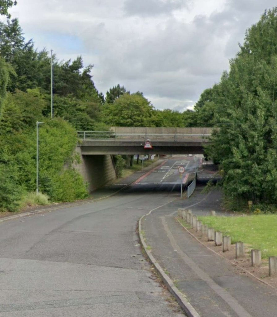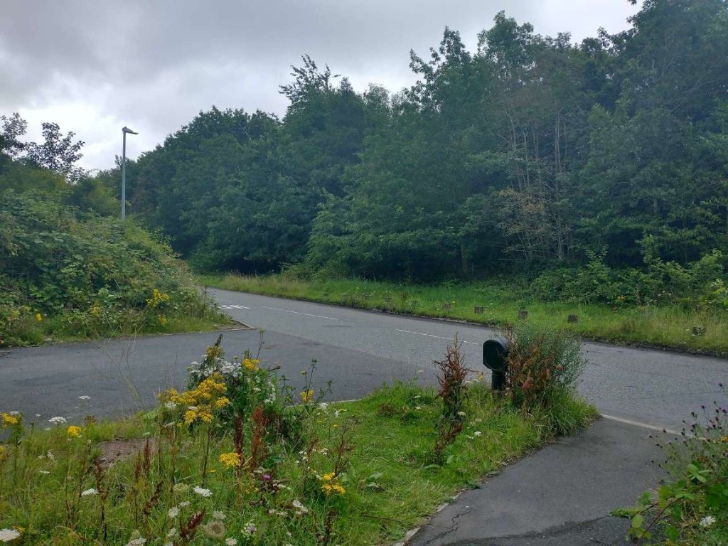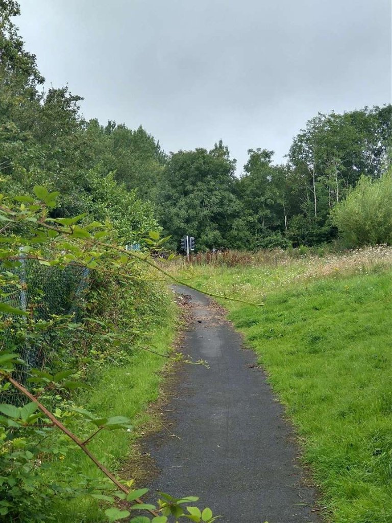A first smaller-scale extract from the 25″ Ordnance Survey of 1882. [7]Following Wrekin Drive to the South on Google Streetview, the road entering the image from the left is Turreff Avenue. [Google Streetview, June 2022]Wrekin Drive heading towards its junction with Queen Road/Oakengates Road, still on the line of the old tramway. [Google Streetview, June 2022]This 25″ map extract from the 1882 Ordnance Survey shows (centre-top) the point at which the old tramway route crossed what is now the junction between Wrekin Drive and Queens Road/Oakengates Road. From this point on the road name changes to St. George’s Road. In the bottom-left the crossing point over the Donnington Wood Canal can be seen with tramway rails still in place to serve the Ironstone shaft which appears centre-bottom of the extract. [7]This extract from Google Maps covers the length of the old tramway route from the North edge of the extract above to the South edge of the next map extract below. [Google Maps, July 2023]This extract from the RailMapOnline satellite imagery shows the old tramway in turquoise overlaid on St. George’s Road and Lodge Road. [10]The view South from Wrekin Drive onto St. George’s Road at the crossroads with Queen’s Road and Oakengates Road. [Google Streetview, June 2022]The view South across the point where the old tramway crossed the Donnington Wood Canal. The road on the right is High Mount which follows the old canal towpath. The canal itself is long-gone. [Google Streetview, June 2022]Further to the South, the connection is made between the tramway crossing the Canal and the wider tramway network. The road entering the bottom the extract and running Northeast toward the tramway is now St. George’s Road. Its extension to the East of the tramway is Bradley Road. The tramway curves round from what is now the South-southeast bound St. George’s Road onto what is now Lodge Road. [7]As St. George’s Road veers to the right to meet the roundabout ahead the old tramway alignment runs through the bus stop and trees parallel to the footpath on the left of the image. [Google Streetview, June 2022]The old tramway crossed what is now Bradley road and then turned to the left along what is now Lodge Road, joining the wider tramway network. [Google Streetview, June 2022]The view Southeast from the roundabout along Lodge Road. The old tramway ran on the South side of the road. [Google Streetview, June 2022]The tramway followed the South side of what became Lodge Road. [7]The tramway and Lodge Road only just touched the top-right corner of this 25″ OS sheet published in 1882. [14]This RailMapOnline image shows the approximate route of the tramway from the modern roundabout and across Donnington Wood Way heading towards Old Lodge Furnaces in what is now Glanville Country Park. Its Eastern edge is in approximately the same location as the Eastern edge of the OS map extract immediately above. The turquoise line running left to right across the image is the approximate line of the tramway. The 1882 OS map extracts show the line running within the carriageway, but on the South side, of Lodge Road. [10] Lodge Road looking East. The track on the left is an arm of Lodge Road. Ahead the road is gated and now-a-days narrows to a tarmacked footpath leading towards Donnington Wood Way. [Google Streetview, July 2018]Looking West along Lodge Road footpath from a point 30 metres or so beyond the gate. [My photograph, 27th July 2023]Looking East along Lodge Road towards Donnington Wood Way. [My photograph, 27th July 2023]Looking back West along Lodge Road from the pelican crossing on Donnington Wood Way. [My photograph, 27th July 2023]Looking East across Donnington Wood Way from the same location. The bollards on the opposite side of the road mark the continuing line of Lodge Road and the old tramway. [My photograph, 27th July 2023]Travelling further to the East and on the next OS sheet, the tramway continues East-southeast along Lodge Road which is shown as a relatively wide track. [15]This image from RailMapOnline covers a similar length of the tramway as does the OS map extract above. [10]Looking Southeast from Donnington Wood Way along the route of the tramway. In the past Lodge Road was a wider track, the tramway continued to run just inside the South verge of the track. [Google Streetview, June 2022]Looking back along the line of the old tramway towards the modern Donnington Wood Way. [My photograph, 27th July 2023]Turning through 180°, this is the view Southeast along the line of the tramway. [My photograph, 27th July 2023]Around 100metres further to the Southeast, this is the view back towards Donnington Wood Way. [My photograph, 27th July 2023]And again, Turning through 180°, this is the view Southeast towards Old Lodge Furnaces. [My photograph, 27th July 2023]At the bottom-right of the satellite image above, and at the top-left of the satellite image below, this is the view along the line of the old tramway where it crosses Granville Road. The line ran through the trees ahead curving round a little towards the South but still generally on a Southeast bearing. [My photograph, 27th July 2023]This next map extract from the 25″Ordnance Survey published in 1882 shows the line curving round to the Southeast and passing a series of spoil heaps before arriving at the site of Old Lodge Furnaces. [15]This RailMapOnline image is approximately the same width as the map extract above. The tramway route we have been following enters top-left and runs diagonally across to the right edge of the image. Modern industry now occupied the Western part of the Old Lodge Furnaces site. [10] The site of Old Lodge Furnaces as it appears on the 25″Ordnance Survey of 1882. The tramway enters the site at the bottom-left of this map extract. [15]Covering approximately the same area as the map extract above, this image, from the RailMapOnline satellite imagery shows the area of Old Lodge Furnaces as it appears in the 21s