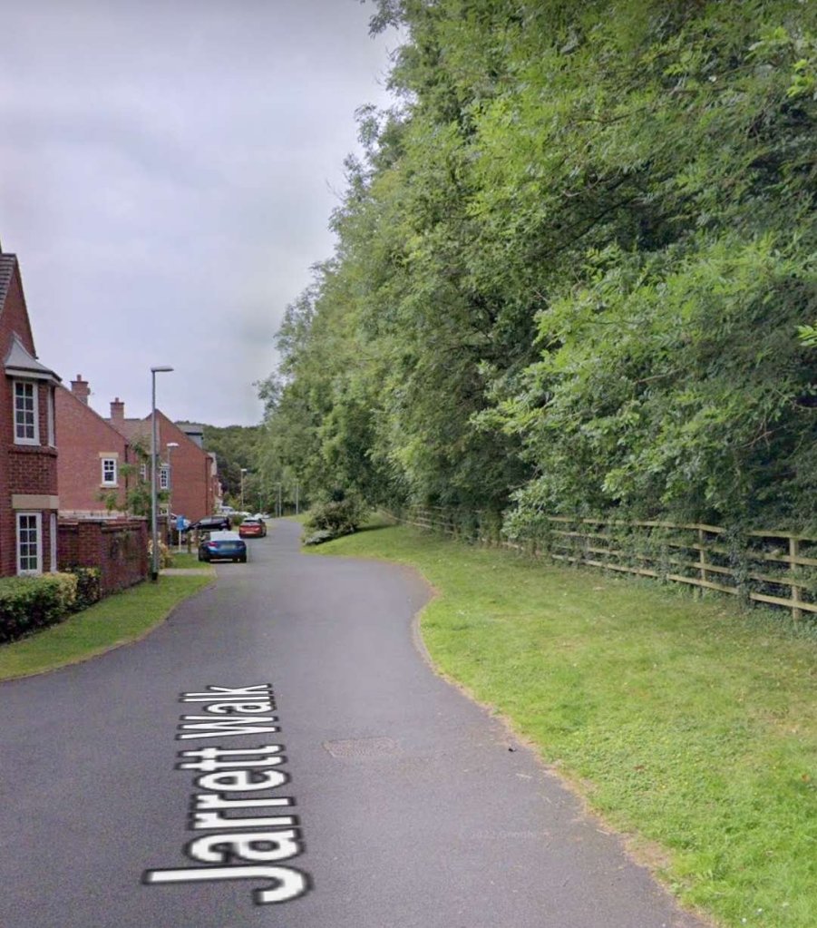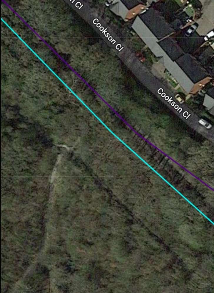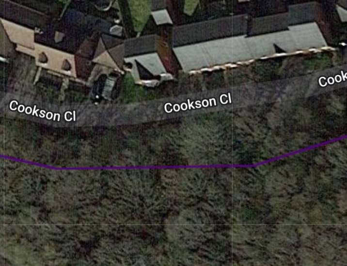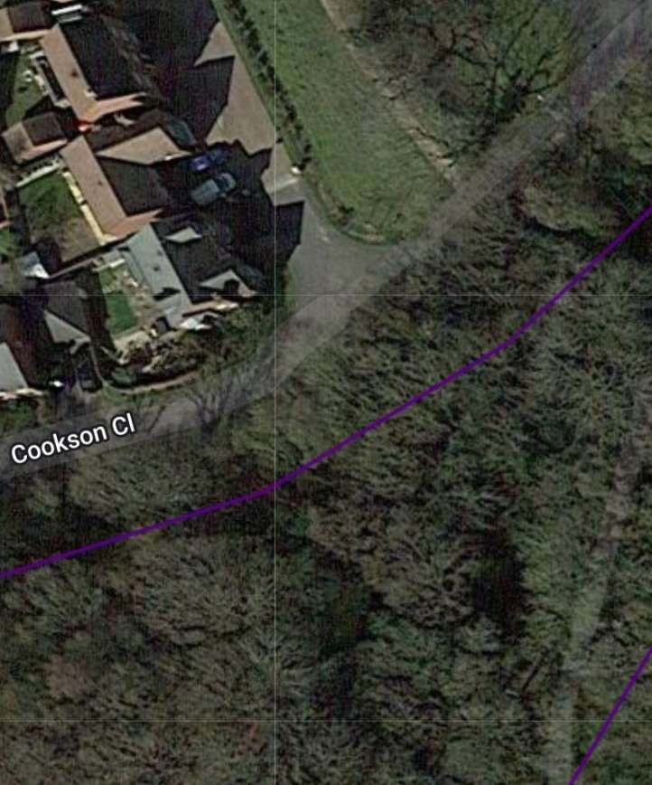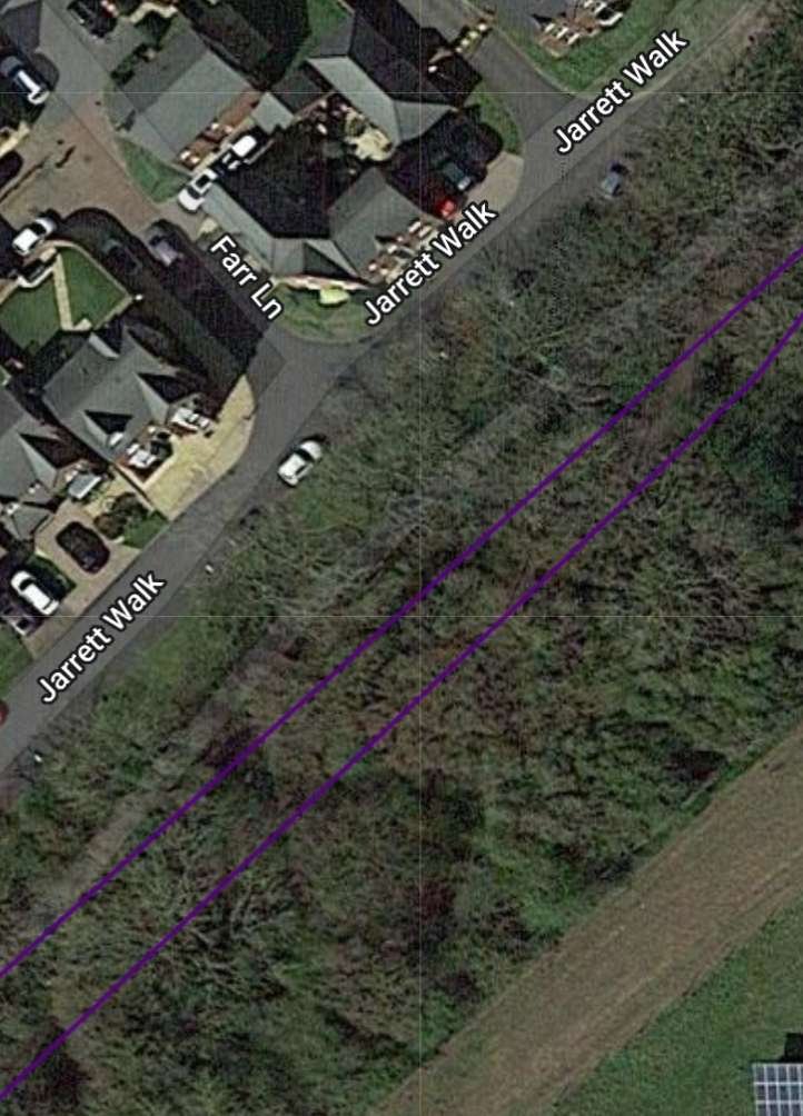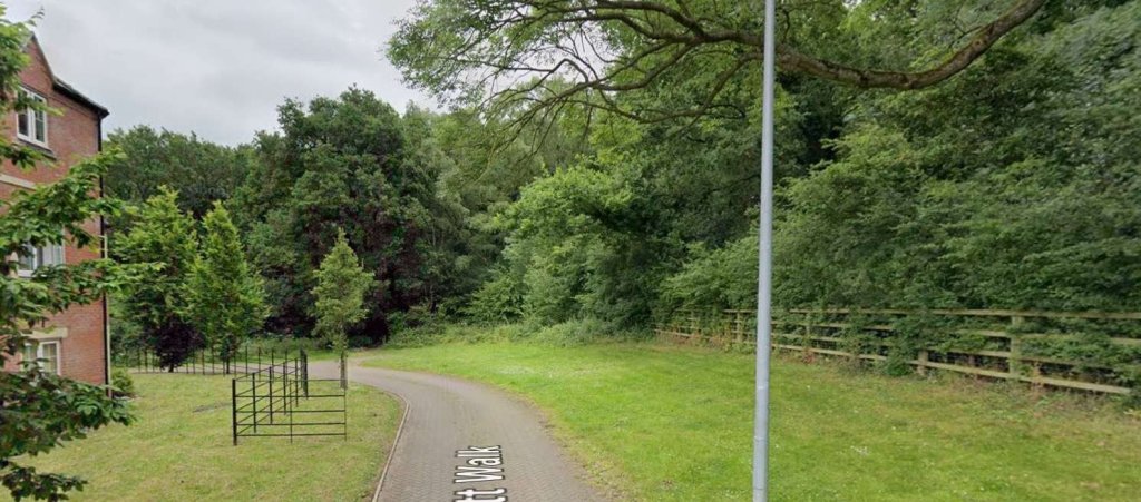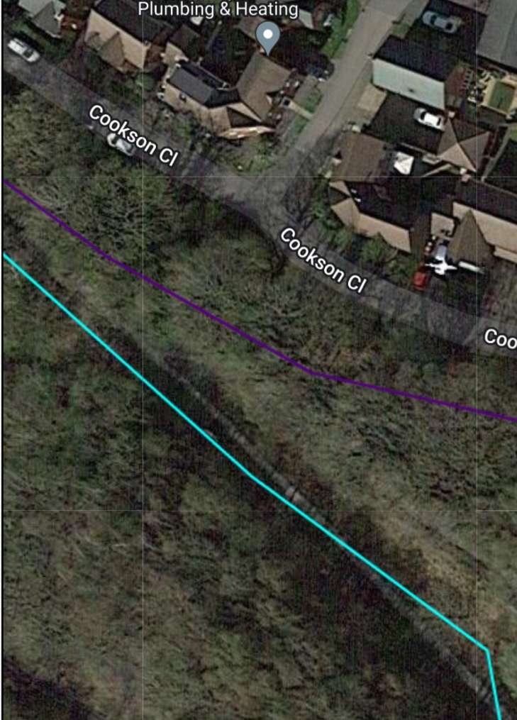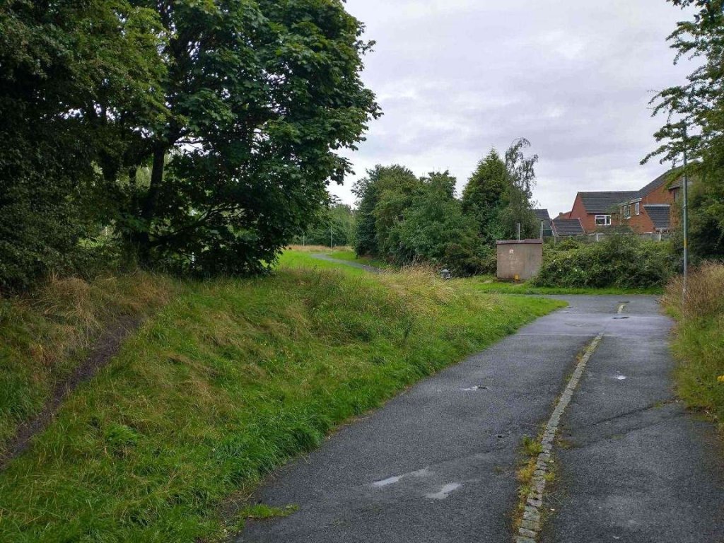 This sequence of 9 extracts from RailMapOnline.com show the same length of the mineral railway as covered by the Ordnance Survey extract above the sequence. [10]Looking Southeast along Cookson Close from a point close to the roundabout on Donnington Wood Way. The old tramway ran through the trees to the right of the fence visible in this image. It ran at a higher level. [Google Streetview, June 2022]Further Southeast, this view looks East along Cookson Close. The old tramway was at a higher level. Its route runs beyond the fence and trees at the right of this image. [Google Streetview, June 2022]Cookson Close curves round towards the Northeast before reaching a modern development boundary. A short footpath takes us to Jarrett Walk. This photograph is taken at the point where we join Jarrett Walk and looks Northeast. The old tramway route ran at a higher level beyond the fence and trees to the right of this image. [Google Streetview, June 2022]As we reach the far boundary of this development, Jarrett Walk turns away to the Northwest. The old tramway route continues ahead parallel to but beyond the fence to the right and at a higher level. [Google Streetview This next extract from the 1881 25″ Ordnance Survey shows Muxtonbridge Colliery, which was served by the mineral railway, Muxtonbridge Farm and the Donnington Wood Canal arm meandering its way Northeast towards Lilleshall Grove Lilyshall Abbey and Lilyhurst Road. [26]These last two extracts from RailMapOnline.com show the last length of the mineral railway that served Muxtonbridge Colliery. [10]