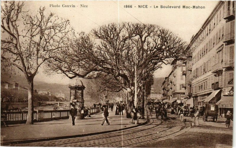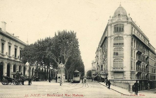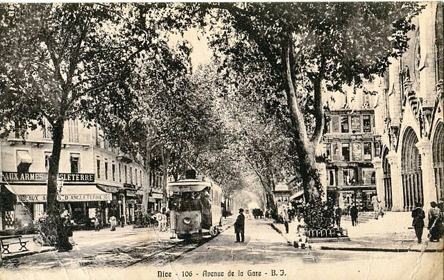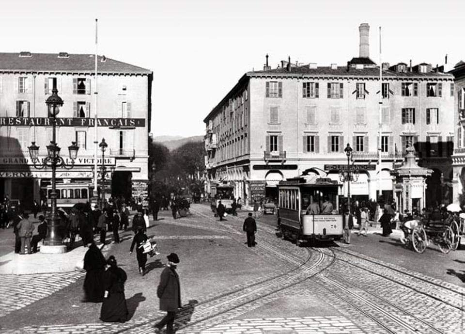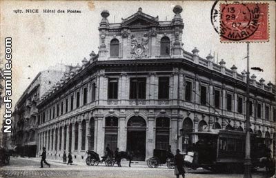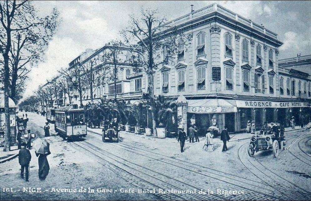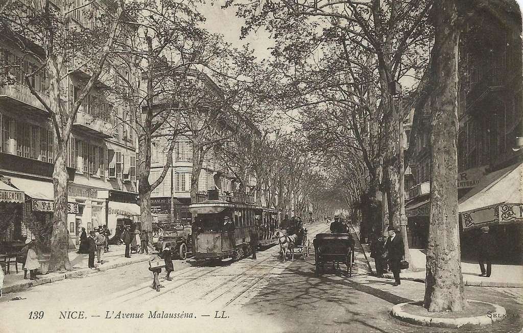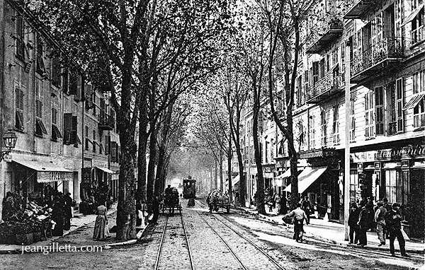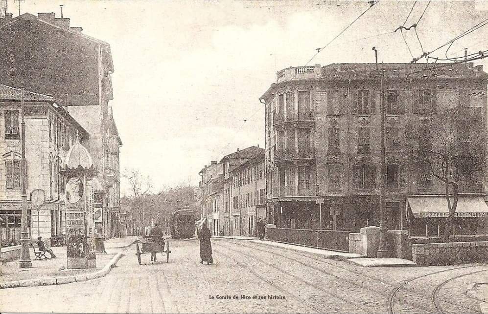 After passing Place de la Liberté (now Wilson) in front of the main post office (built in 1888 and which gave its name to the street), it reached the crossroads at Rue Tonduti-de-L’Escarène where it was crossed at right angles by the route between Nice’s Port and the Railway Station. (That route was used both for passengers and for goods.