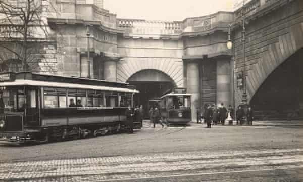 Class G Tramcar No. 584 leaving the Subway for Westminster in 1923. The L.C.C. flaman can be seen to the right of the photograph. [1: p389]