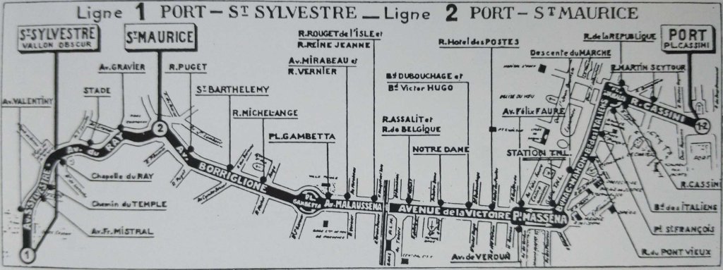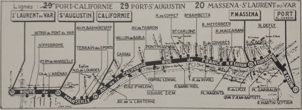 This line ran West from Place Massena to St. Laurent-du-Var, initially following an East-West route along Rue Masséna, Place Magenta, Rue de France and the Place de la Croix-de-Marbre.