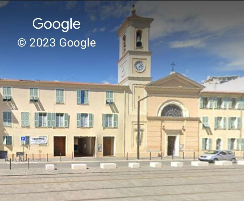TNL tram No. 124 alongside the church rooms if Ste. Hélène on Avenue de la Californie. This image was shared on the Comte de Nice et son Histoire Facebook Group on 11th June 2020 by Jean-Paul Bascoul. [9]The same location on Avenue de la Californie, l’Eglise de Ste. Helene. [Google Streetview, April 2023]