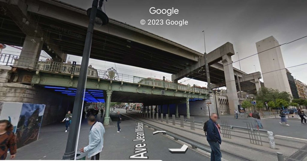 Pont Magnon. The tram tracks can be seen in the road surface. The branch to La Madeleine turns away at the right of this image which was shared on the Comte de Nice et son Histoire Facebook Group on 14th January 2020 by Roland Coccoli. [10]The location of Pont Magnan. Boulevard de la Madeleine runs away to the right at this junction. [Google Streetview, October 2022]