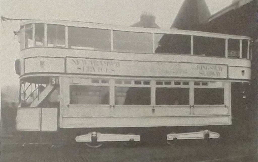 No. 30: was built in 1904 by the Electric Railway and Tramway Carriage Co., Ltd. It was a roofed ‘toastrack’ and painted Red &White. It had 56 seats and was withdrawn in 1971.