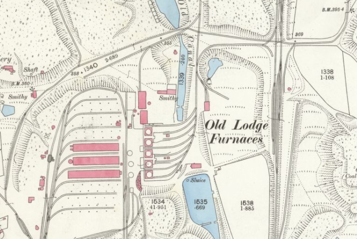 In 1824 the company brought into blast two new furnaces near the site of the Old Lodge. They were named the Old Lodge furnaces because of their proximity to the site of an old hunting lodge which was demolished in 1820. In March 1825 the Lilleshall Company paid the Coalbrookdale Company £2392 for (presumably) a Blast Engine. George Roden, a stonemason from the Nabb, was paid £425 in 1825 and £777 and 5 shillings in 1826 for erecting loading ramps and the retaining walls. In 1830 the Donnington Wood and the Old Lodge ironworks together produced 15,110 tons. A third furnace was added in 1846 and two more in 1859.