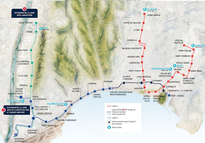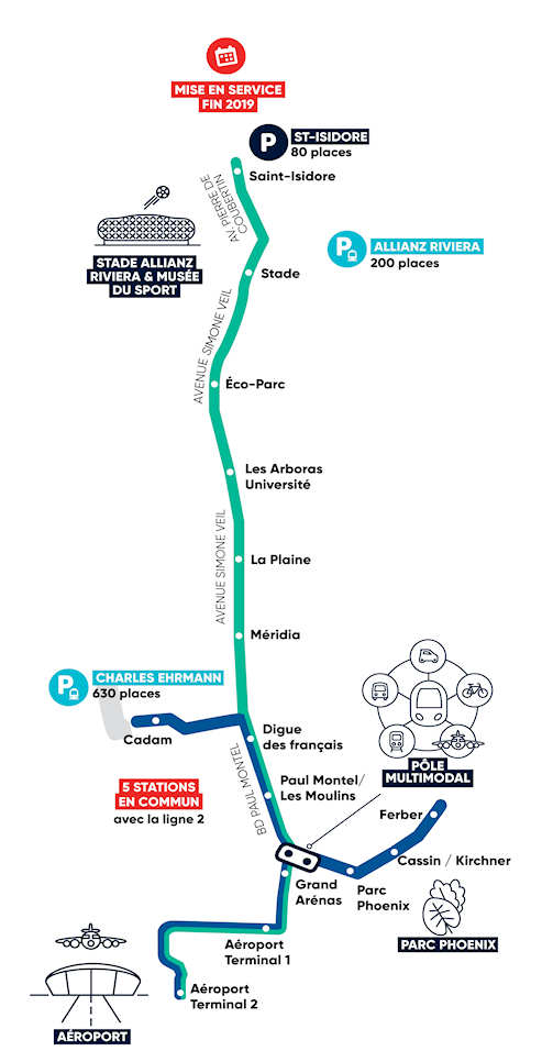 The extension along the Var valley mentioned in the Wikipedia article is now, in 2023, operational as Ligne 3.