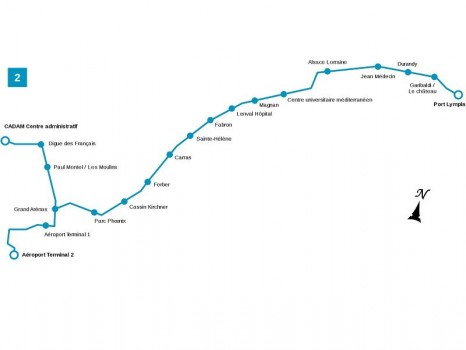 Ligne 2 connects the Airport with Nice’s Port Lympia, traversing central Nice. It connects with Ligne 1 at Avenue Jean Medecin and at Place Garibaldi.
