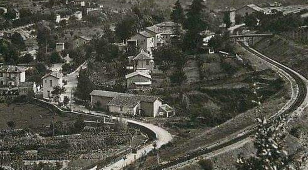 From there, the line continued up the left bank of the Paillon. Banaudo tells us that there was only one further passing-loop which was in the district of Roccaya, near the Rémaurian footbridge. “The Bendéjun terminus was in the Moulins district, in a steep site where the road crosses the Paillon and definitively leaves the bottom of the valley to rise in bends towards this village and that of Coaraze.” [1: p67]