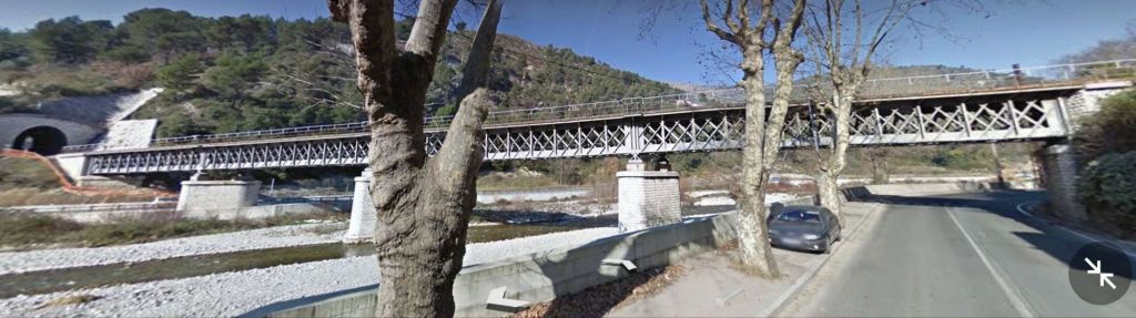 Banaudo says that the road junction adjacent to the bridge was the point at which the L’Escarene tram line would have branched off the line to Contes. Work on that line wasn’t completed. [1: p67]
