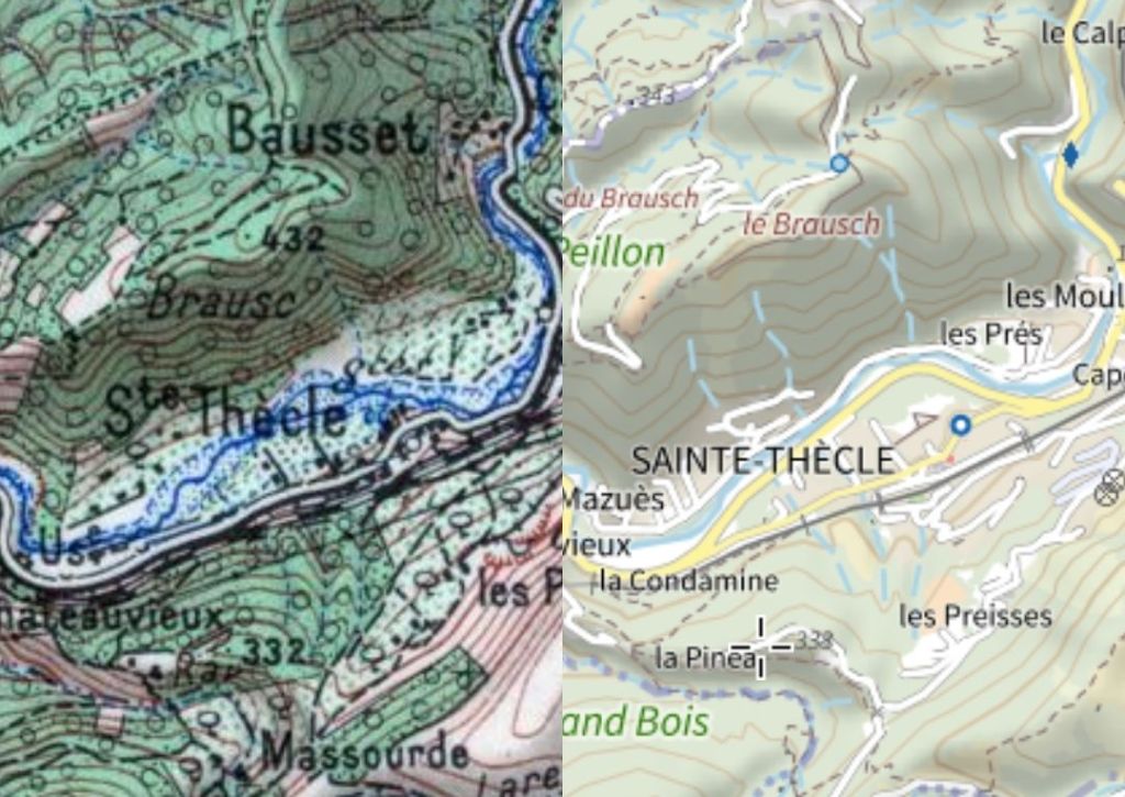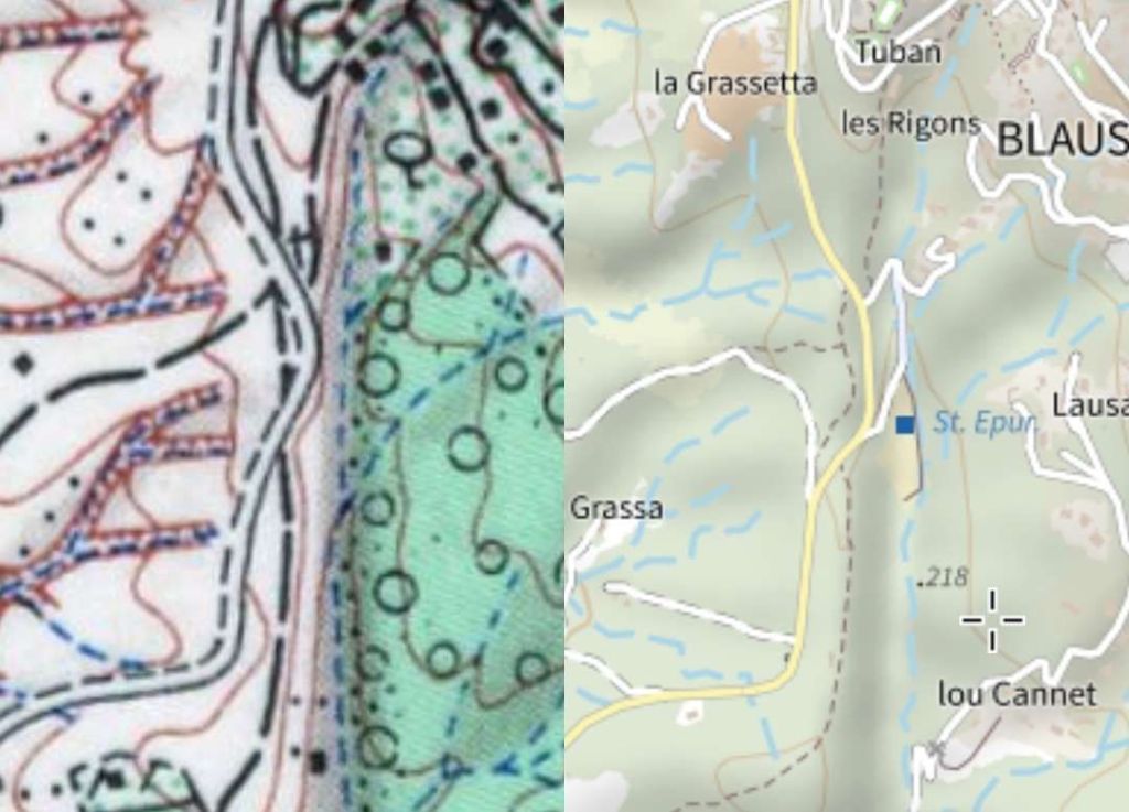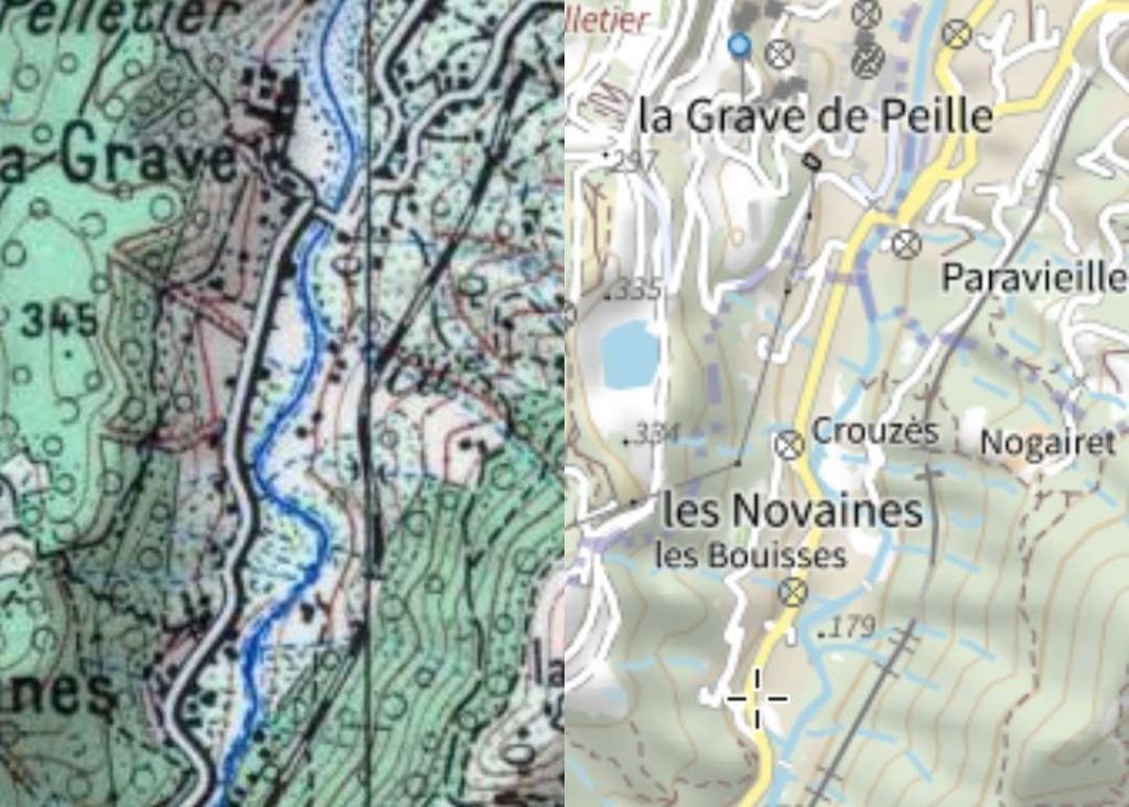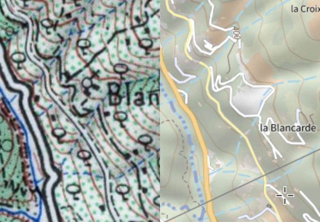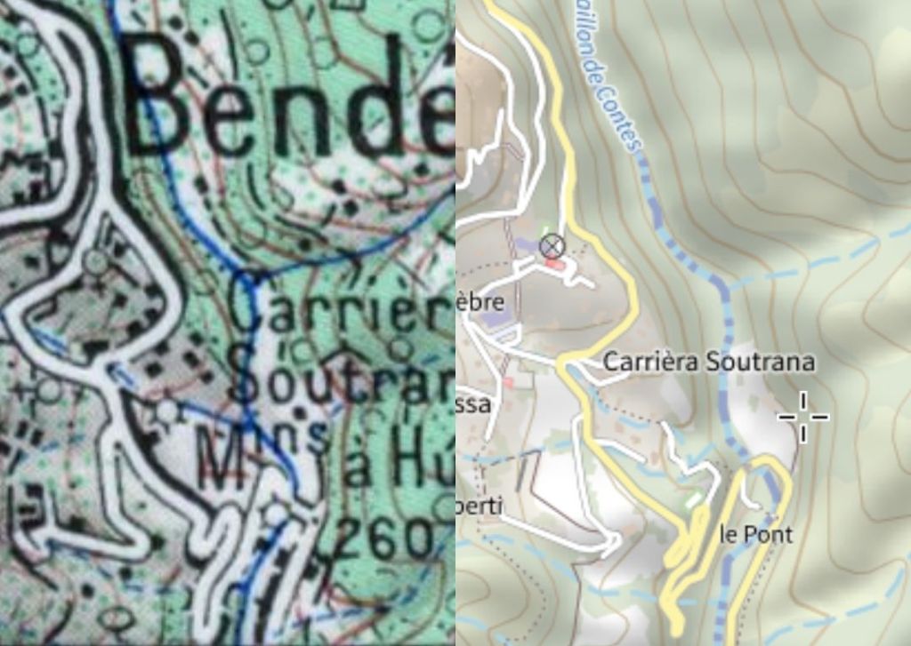 - https://remonterletemps.ign.fr/comparer/basic?x=7.353504&y=43.833178&z=14&layer1=GEOGRAPHICALGRIDSYSTEMS.MAPS.SCAN50.1950&layer2=GEOGRAPHICALGRIDSYSTEMS.PLANIGNV2&mode=doubleMap, 29th December 2023.