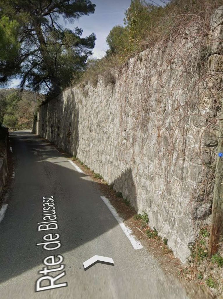 North of the tramway tunnel, the last kilometre or so of the CD321 and hence the last length of the independent tramway formation required the construction of a series of retaining walls. These next few photographs illustrate the size of the task undertaken by the contractors in the early 20th century. The four photos follow the Route de Blausasc North towards its junction with the Route de la Col de Nice.