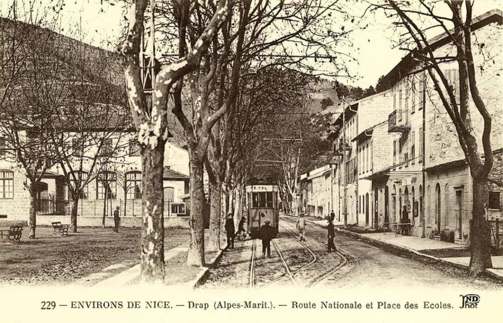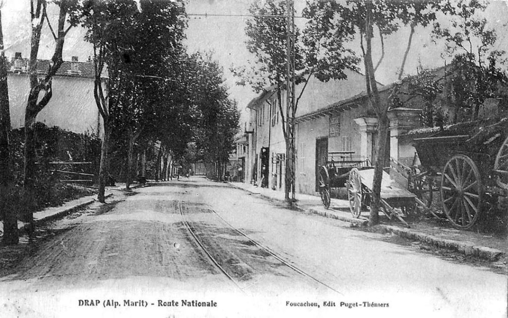 For a short distance trams ran on the verge of Route Nationale No. 204. Stops at Roma and Random (which had a passing loop) were followed by the stop in the village of Drap which was adjacent to the bridge to Cantaron.