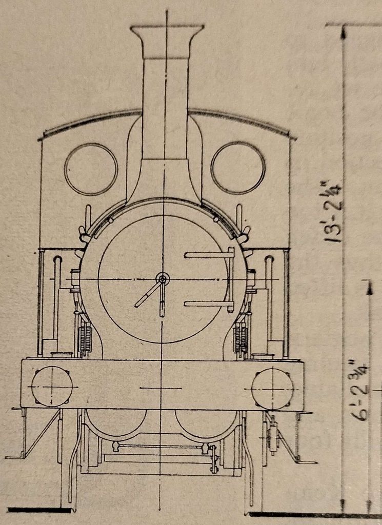 The locomotive, as designed, had no brake blocks, the only brake being a clasp type on the tender.