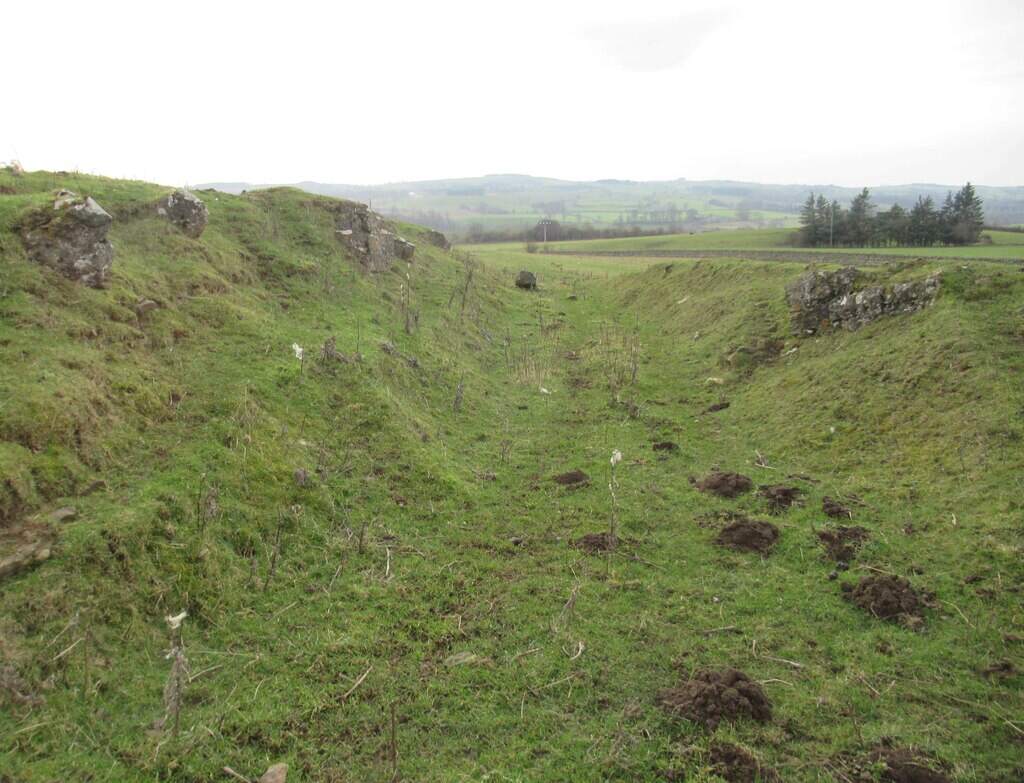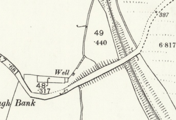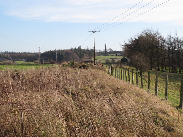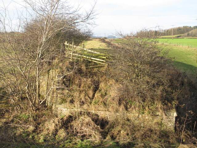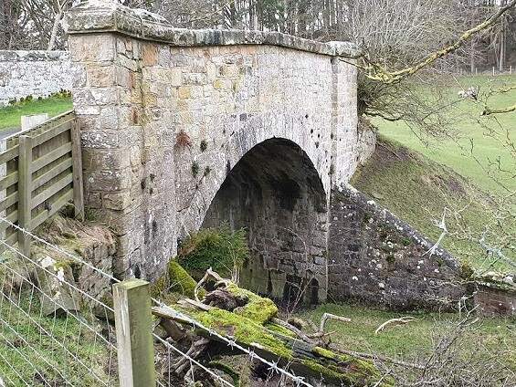 The line travelled on, Northwest from Chollerton, much of the time in deep cutting as far as Dallabank Wood, by which time it was running on a northerly course. Soon after the wood, the line turned towards the Northwest, passed under the local road (Dalla Bank), crossed a short but high embankment under which Barrasford Burn was culverted, and entered Barrasford Railway Station.
