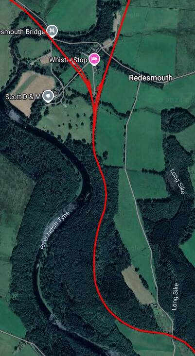 The two images immediately above focus on the railway infrastructure at Redesmouth which spreads over quite a large site surrounding the hamlet of Redesmouth. [Google Maps, October, 2024] [36]