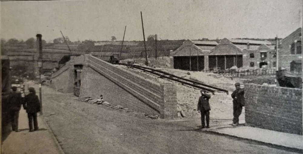 The tram depot for the Burton and Ashby Light Railway was accessed at high level off the bridge shown above.