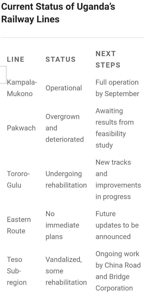 URC recently completed upgrades on the Kampala-Mukono Meter Gauge Railway (MGR), primarily catering to passenger services. Plans are underway to introduce cargo services soon, while ongoing projects, including the Tororo-Gulu line, aim to enhance the rail system across key regions like Mbale, Kumi, Soroti, and Lira, culminating at the Gulu Logistics Hub.