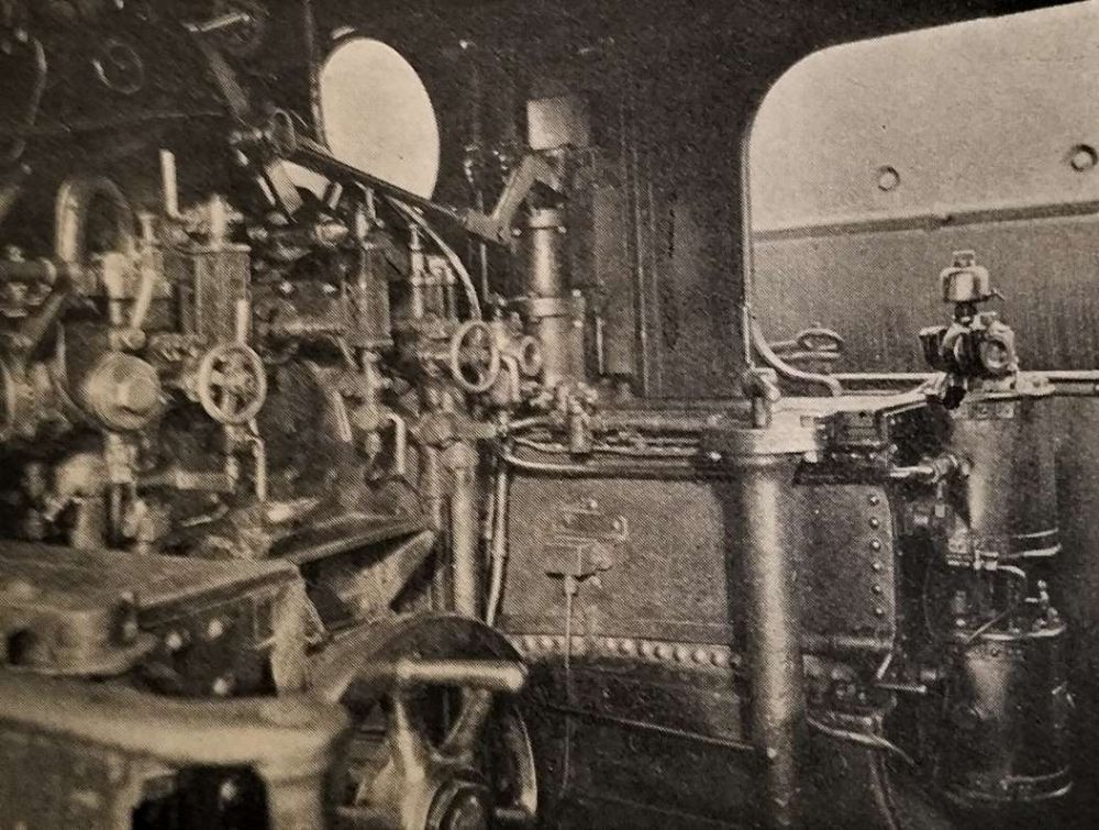 “There are two three-cylinder vertical engines of 240 18.1lp each with a huge fly-wheel weighing about nine tons, coupled direct to two cylinders, each capable of giving an output of 150 kilowatts.” [1: p57]