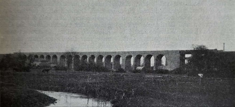 Brackley Viaduct was one of many heavy engineering works entailed in the construction of the GCR extension to London which opened formally on 15th March 1899. It was built to carry the railway across the Great Ouse and the river’s flood plain, the 22 arch 755 foot viaduct was perhaps the most striking piece of architecture on the London Extension. It was demolished in the late 1970s. [1: p377][10]