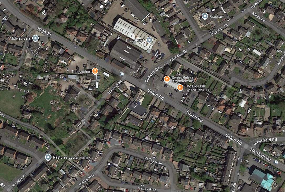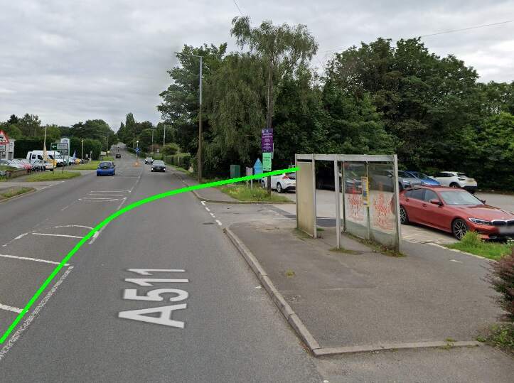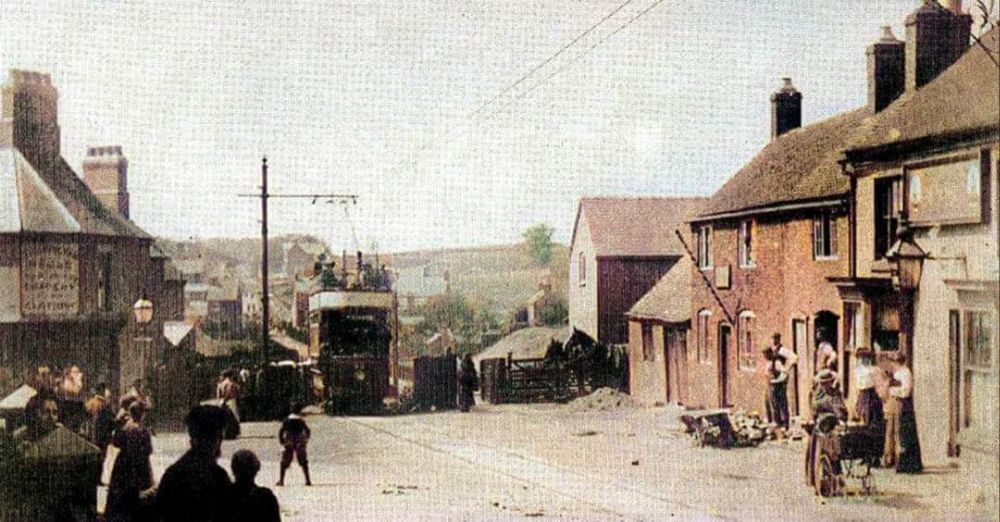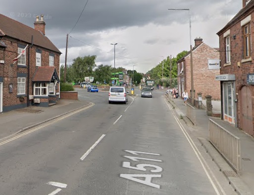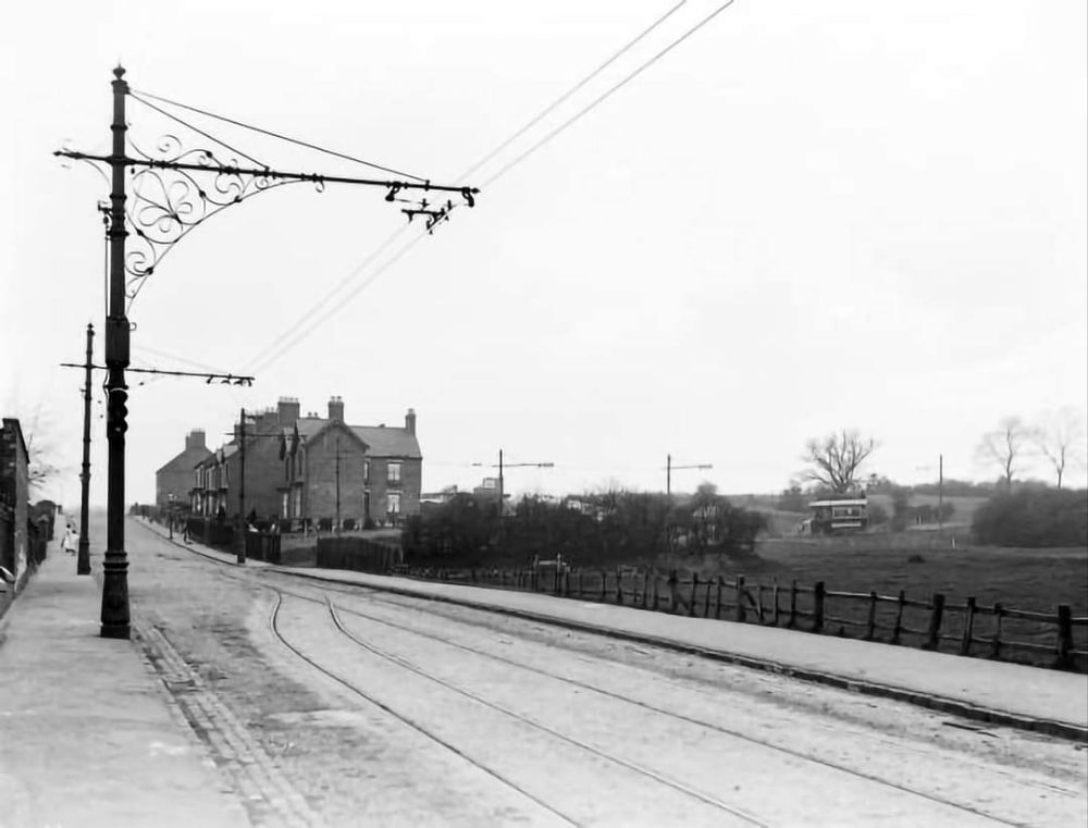 A view East along High Street, Swadlincote from the Market Place. This image was shared on the photographs New and Old of Swadlincote & Burton on Trent Facebook Group by Darren Jones on 8th July 2024. [17]A similar view down High Street in the 2st century. [Google Streetview, August 2022]Facing Southeast along High Street, Swadlincote in the 21st century. [Google Streetview, August 2022]A tram climbs Hill Street towards the Centre of Sawdlincote circa. 1910. This image was shared on the Swadlincote Area Railways, Tramways and Industrial History Facebook Group by Ian Siddalls on 24th February 2019. [33]From Hill Street the line of the old Light Railway runs along a short length of Sir Herbert Wragg Way . Ignoring the junction with the A514, the old line continued to curve gently to the East to follow the modern A514. [Google Streetview, March 2023]Facing East along the A514, the land either side of the modern road has been landscaped and shows little sign of its industrial heritage. [Google Streetview, March 2023]This next extract from the 1921 25″ Ordnance Survey shows the Light Railway running East along Swadlincote Road. The Midland Railway Woodville Brach Line can be seen entering the extract from the South. [15]Further to the East the Light Railway crossed the Woodville Goods Branch of the Midland Railway and ran through the centre of Woodville. [15]The same location in the 21st century. The goods depot is long-gone as are both the road overbridges close to the junction. [18]A tram on its way to Swadlincote passing New Inn, Woodville in the early part of the 20th century. This image was shared on the photographs New and Old of Swadlincote & Burton on Trent Facebook Group by Keith Townsley on 10th January 2023. [19]A similar view looking Northeast on High Street, Woodville, A511 in the 21stcentury. New Inn is on the left of the photo. [Google Streetview, July 2023]Woodville High Street on the 1921 25″ Ordnance Survey. [15]A similar area in the 21st century. [Google Maps, October 2024]Tram No. 13 on High Street Woodville on its test run in 1906. This image, which looks Southeast, was shared on the photographs New and Old of Swadlincote & Burton on Trent Facebook Group by Keith Townsley on 3rd May 2021. [16]A similar vantage point in the 21st century. [Google Streetview, July 2023]Further Southeast on Woodville High Street. [15]A similar area in the 21st century. [Google Maps, October 2024]Further to the Southeast once again. Trams followed the bend in the highway from High Street into Ashby Road. [15]Approximately the same length of road in the 21st century. [Google Maps, October 2024]High Street, Woodville bears left and becomes Ashby Road. [Google Streetview, July 2023]This next extract from the 1921 25″ Ordnance Survey takes us to the East edge of the particular map sheet. [15]Heading away from the camera circa 1911 Is Tram No. 7 en-route from Ashby to Burton on what is now the A511. In a minute or two, the tram would be running Northwest along High Street, Woodville. [34]The same location in the 21st century, looking West towards Woodville. [Google Streetview, July 2023]