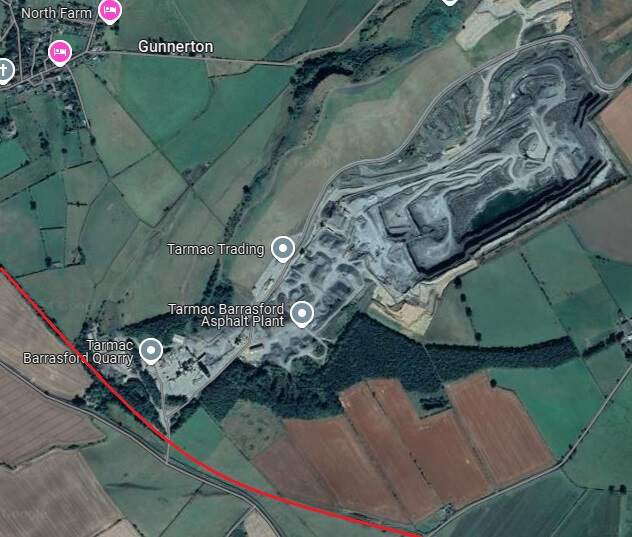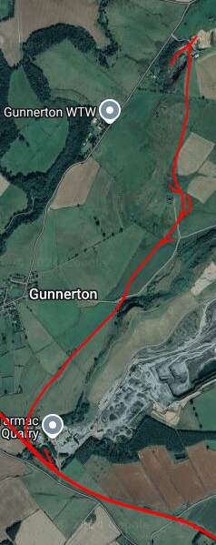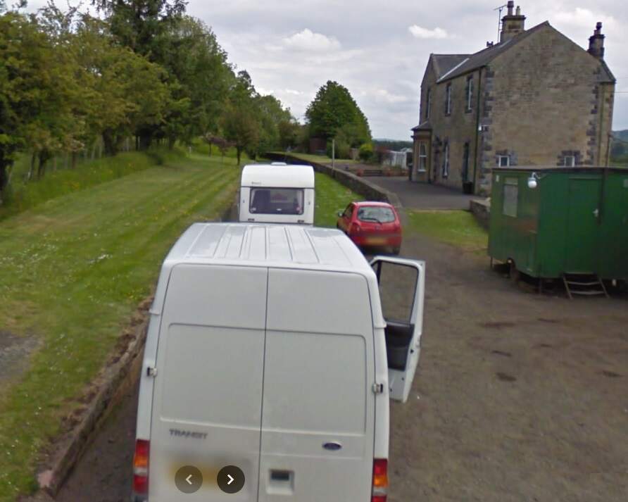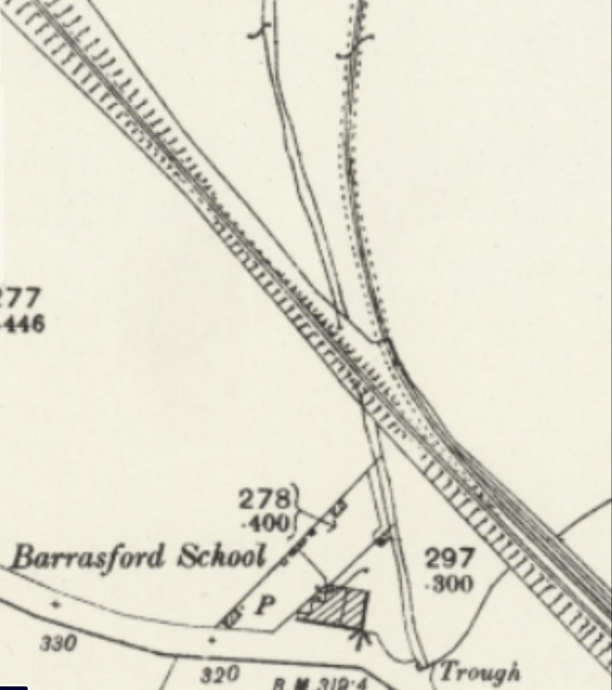 The line Northwest of Barrasford Railway Station. [Google Maps, October 2024]The track bed of the old railway a little to the Northwest of Barrasford Railway Station, looking back along the line towards the station in December 2013, (c) Mike Quinn and licensed for reuse under a Creative Commons Licence (CC BY-SA 2.0). [12]Looking back towards Barrasford Station from Chishill Way. The line was carried at high level over the road. Only the embankments remain. [Google Streetview, August 2023]A wintertime view along the old railway to the West from the East side of Chishill Way, in December 2013, (c) Mike Quinn and licensed for reuse under a Creative Commons Licence (CC BY-SA 2.0). [13]Looking West from Chishill Way. The railway embankment is to the right of the trees. [Google Streetview, August 2023]The track bed further West from Chswell Way, in December 2013, (c) Mike Quinn and licensed for reuse under a Creative Commons Licence (CC BY-SA 2.0). [14]Barrasford Quarry Sidings and Tramway. [7]Tarmac’s quarry at Barrasford is a much larger affair in the 21st century. [Google Maps, October 2024]The entrance to Barrasford Quarry. The red line indicates the approximate route of the old railway which is treelined to the West of the quarry road and through open fields to the East of the quarry road. The siding was on the North side of the line. [Google Streetview, August 2023]Just to the Northwest of Barrasford Quarry Siding was a branch line to Camp Hill, Gunnerton Quarry.This branhc was about 2 miles in length and is recorded on some maps as an old Waggonway. [8]The same location in the 21st century with the old railways superimposed. [Google Maps, October 2024]
