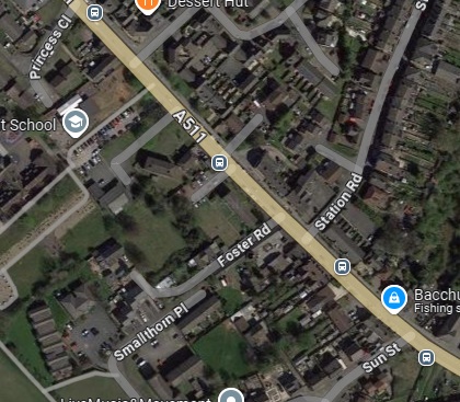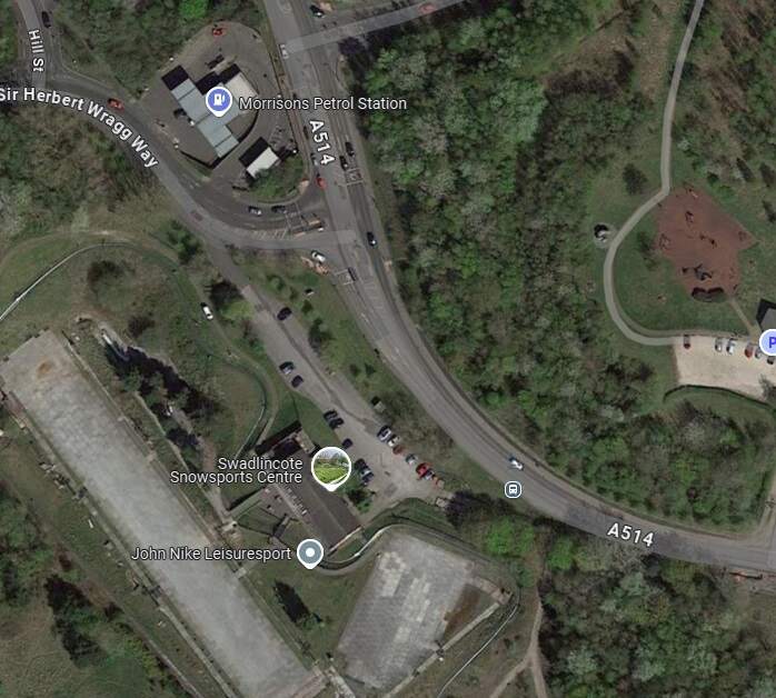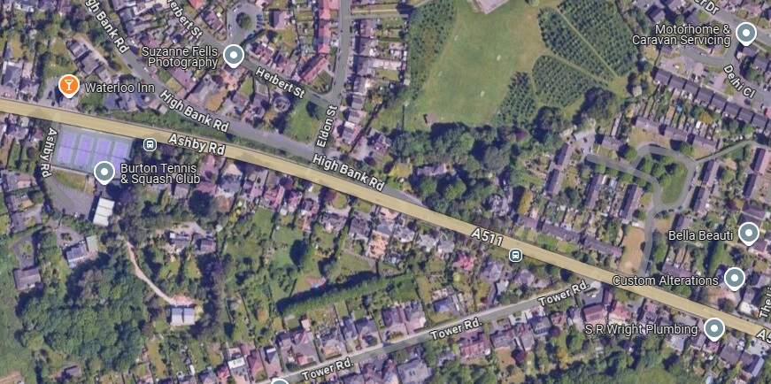 The location of Gresley Station seen from High Cross Bank Roundabout on the A444. [Google Streetview, March 2023]