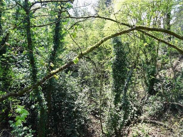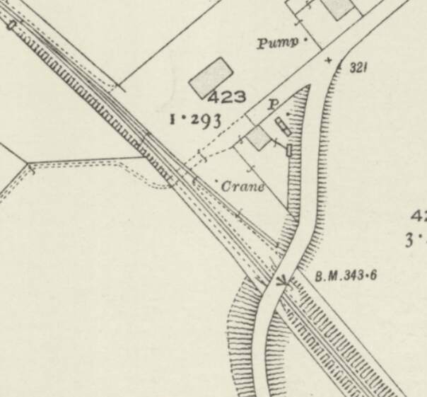 This next extract from the 1895 25″ Ordnance Survey shows that bridge mentioned above crossing the old railway. [27]The bridge mentioned above. [Google Streetview, July 2023]