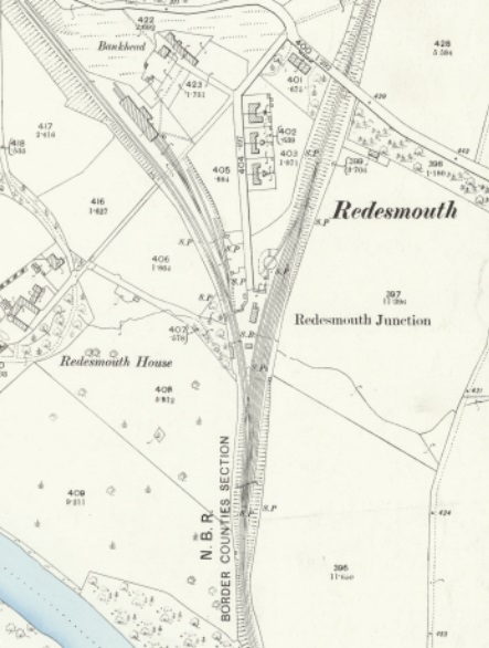 Continuing North from Countess Park alongside the River North Tyne, the Border Counties Railway reaches Redesmouth Railway Station which was a junction station.