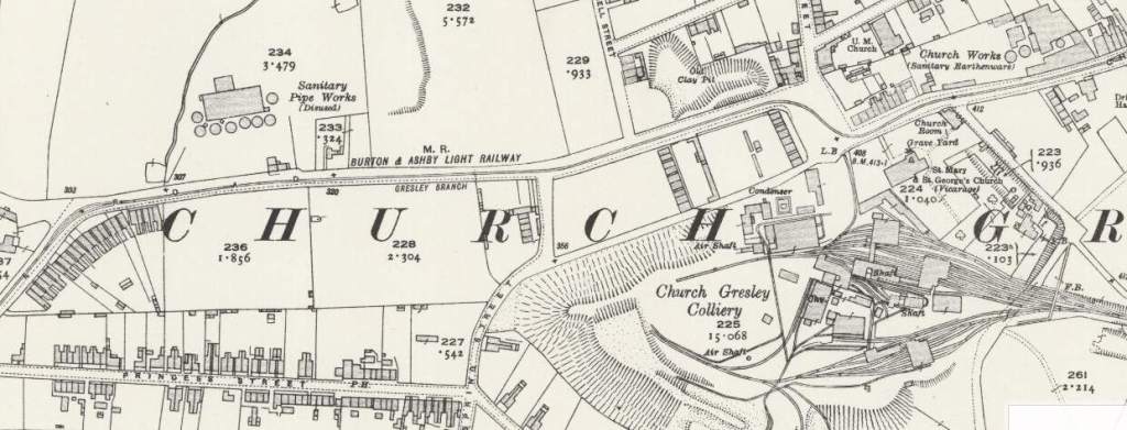 At Swadlincote Market Place a branch left the main line to Ashby-de-la-Zouch. That branch ran South from Swadlincote to serve Castle Gresley. We followed that branch in the first article about the Burton and Ashby Light Railway.
