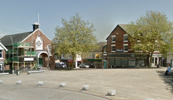 Trams swept round from Market Street into Church Street. [Google Streetview, April 2019.