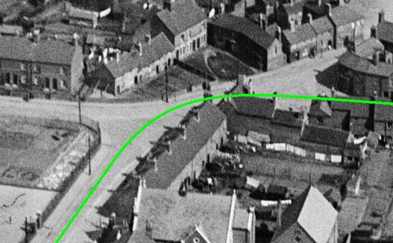 The branch line to Castle Gresley first ran West-southwest along West Street and then, by means of a relatively wide arc (see the small image below), turned down Alexandra Road. Track was dualled along these two streets as far as a point a little to the South of the Public Library. [20]