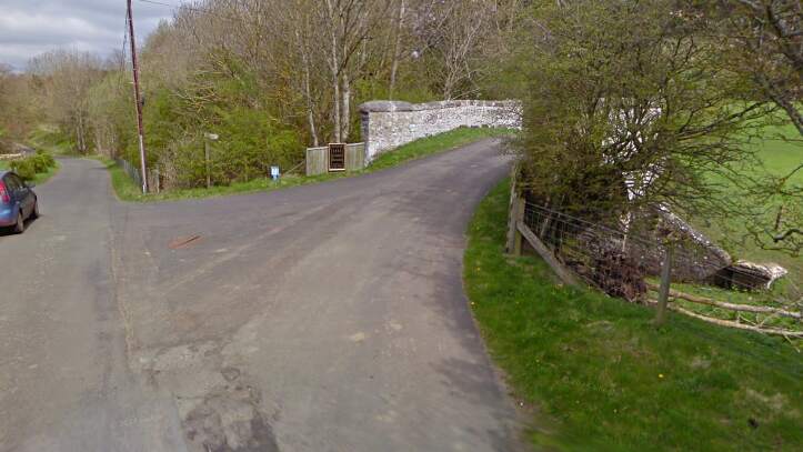 A short distance to the Northwest another access road runs off the highway and crosses the Border Counties Railway.
