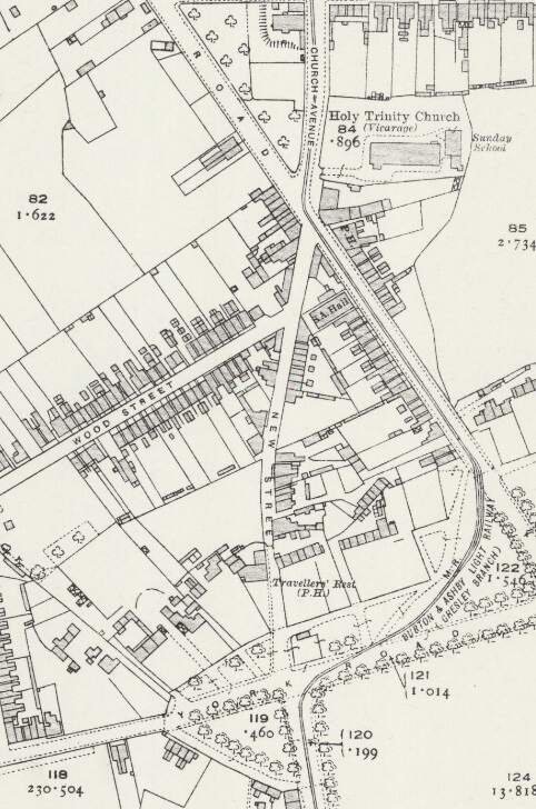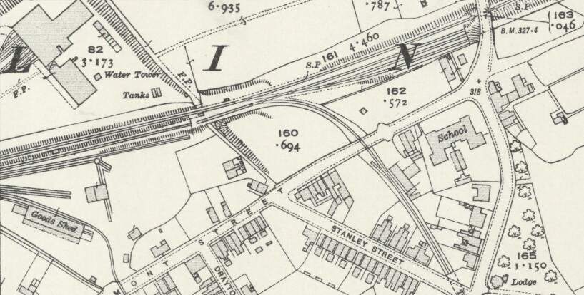 A short section of the Camp Hill Branch Line as shown on the 1920 25″ Ordnance Survey which was published in 1922. [18]