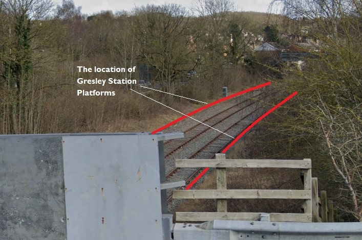 Gresley Station is long-gone, the railway remains in place in the 21st century.