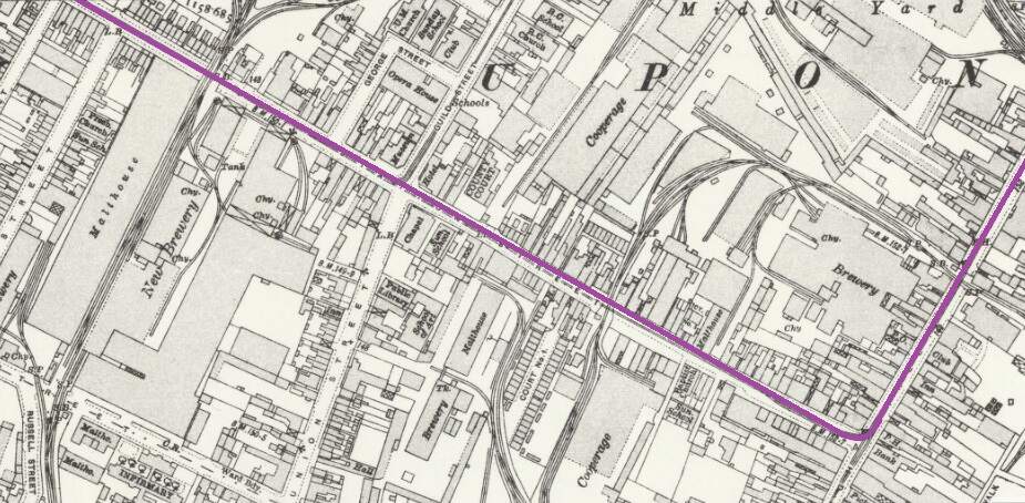 The line ran South from Alexandra Road into Church Avenue. It then turned to the South-southeast along Wilmot Road before sweeping round to the West on York Road before turning sharply into Market Street. [20]