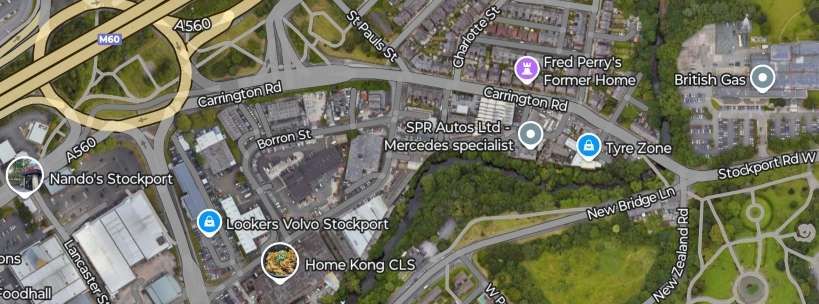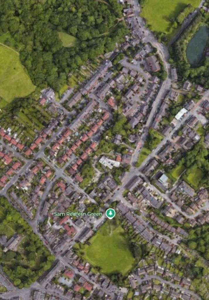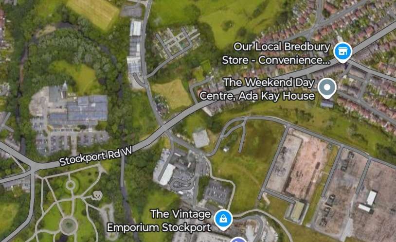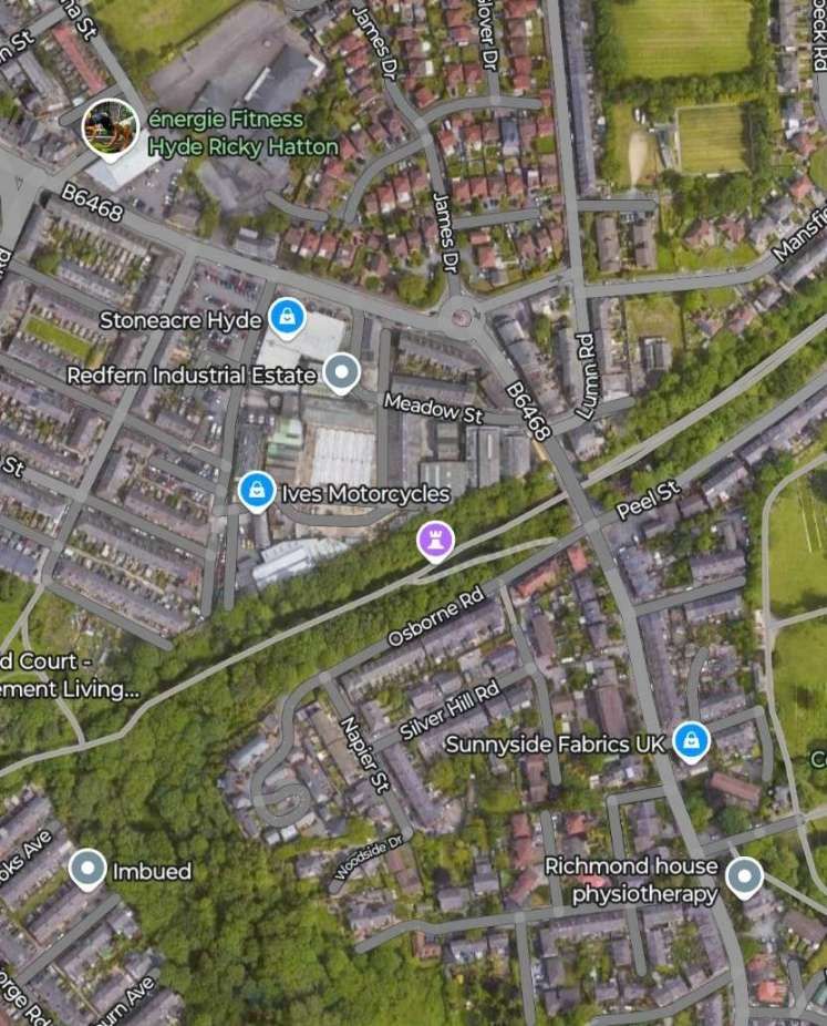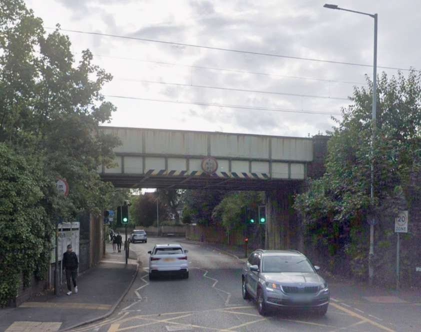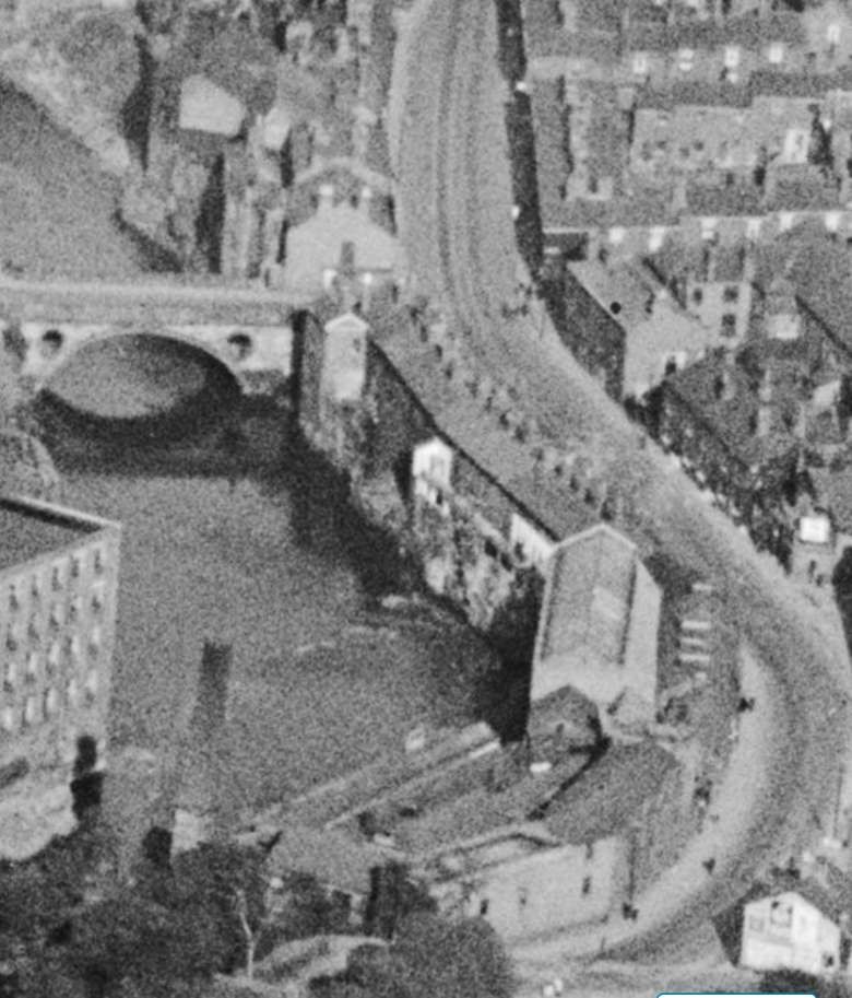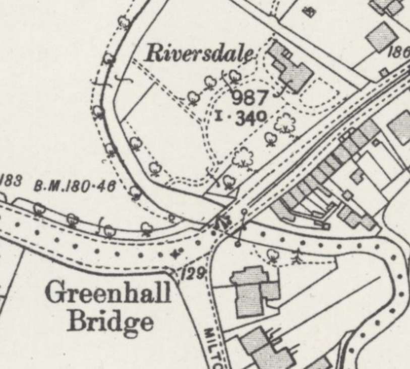 The location of the bridge in the map extract above is shrouded by the tree canopy. A modern satellite image would show very little as does the Streetview image below.