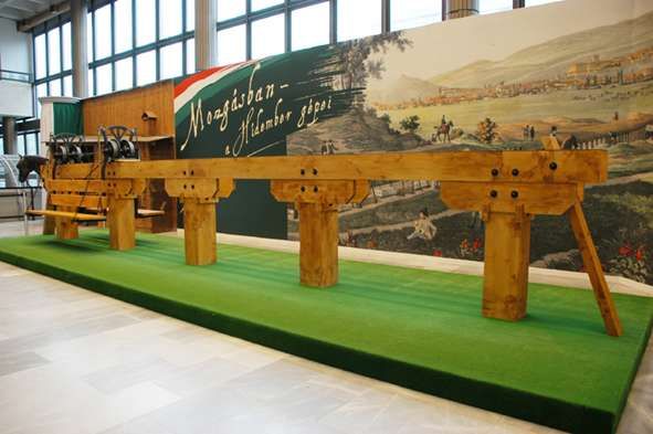 A part of the track and a 2/3 scale reconstruction of the cars at the 2010-2012 exhibition “A hídember gépei” [“The Bridgeman’s Machines”] of the Museum of Transport (Photo: Hungarian Museum of Science, Technology and Transport). [1][2]